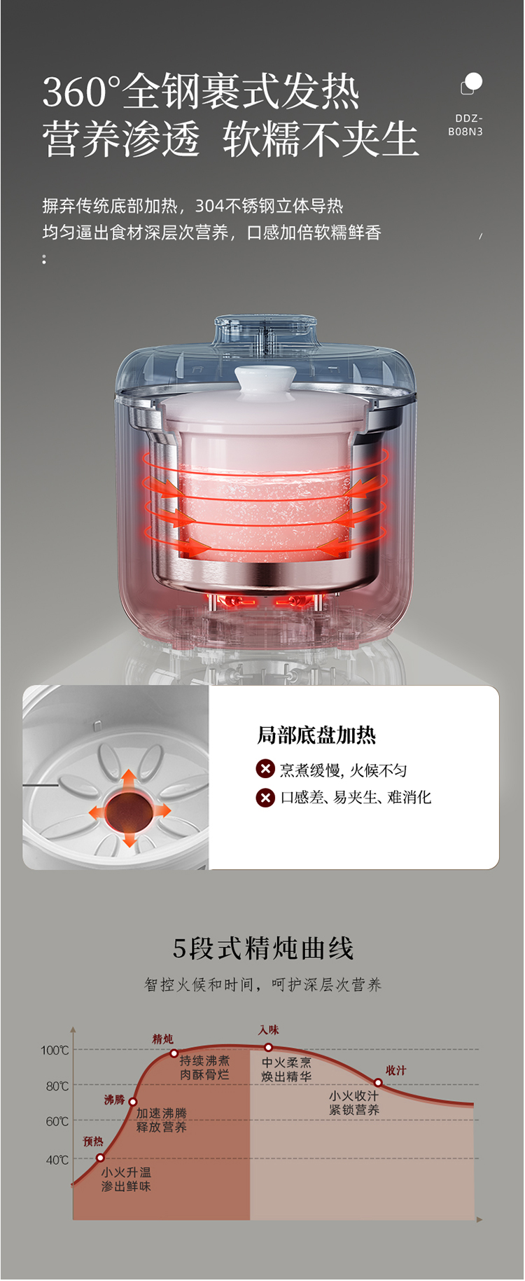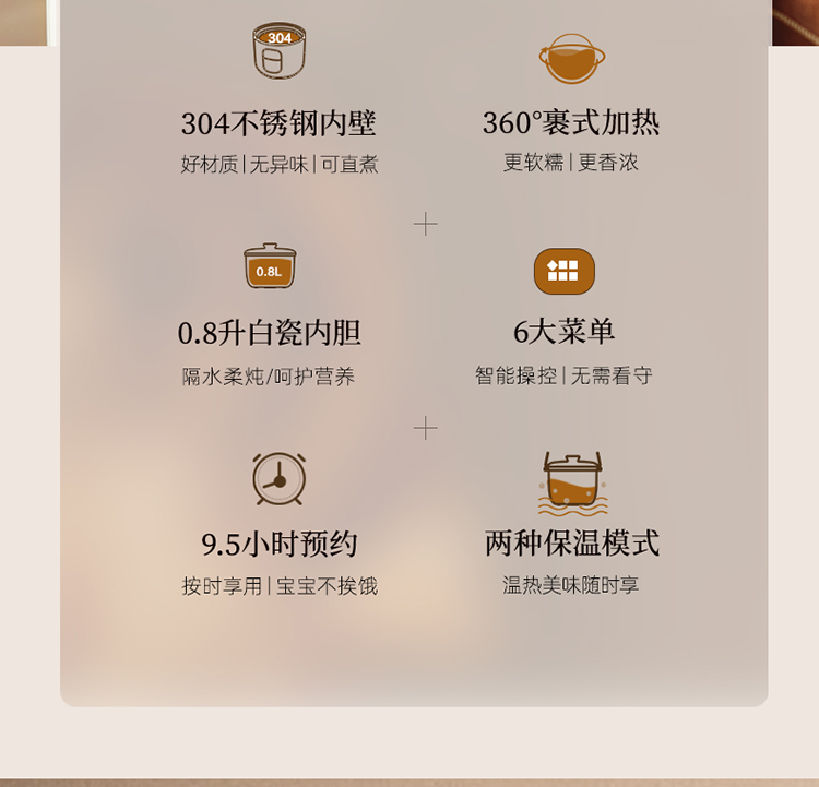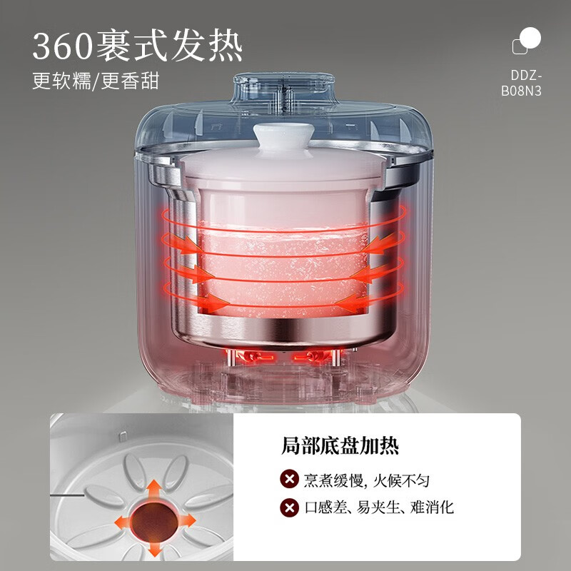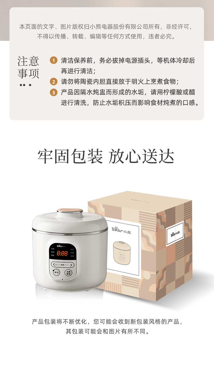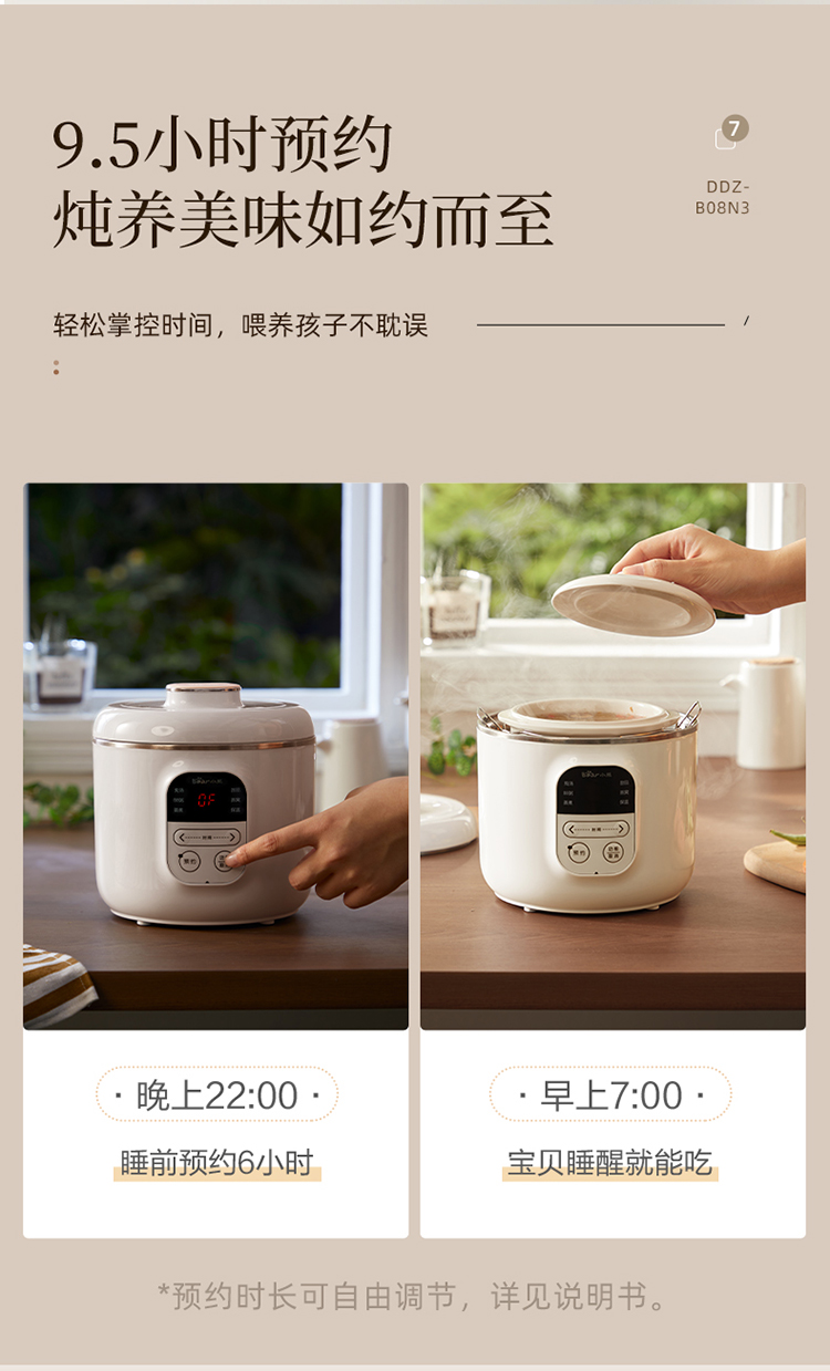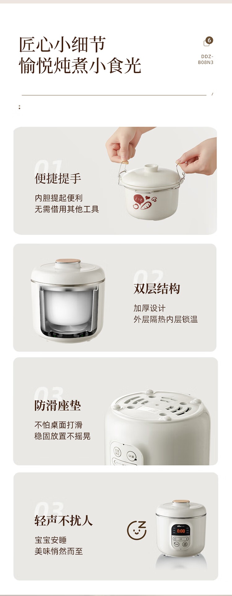 小熊(Bear)电炖盅 电炖锅 燕窝炖盅 宝宝辅食婴儿bb煲迷你煮粥煲汤锅小容量白瓷 DDZ-B08N3 0.8L 自营