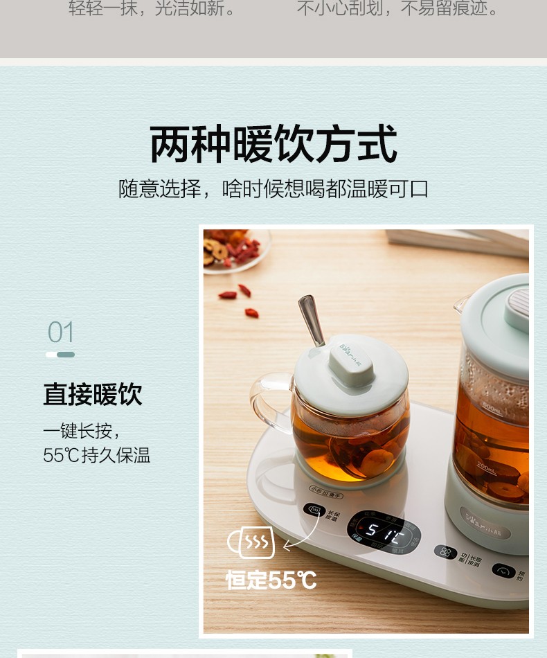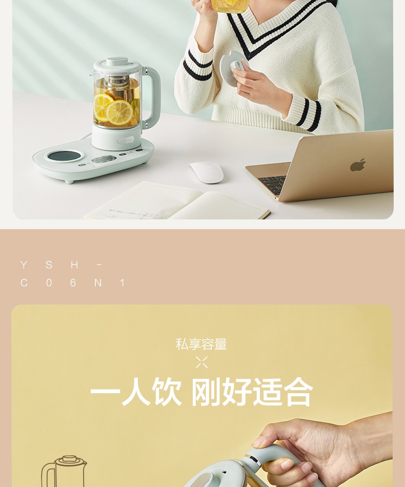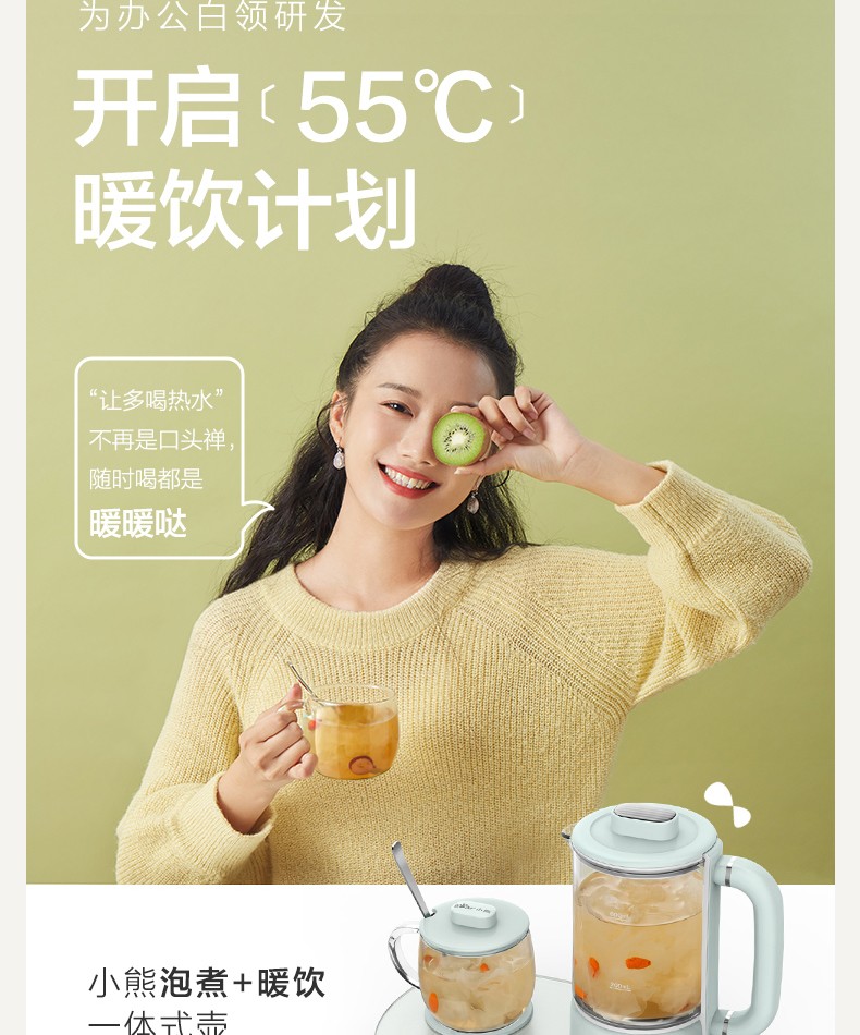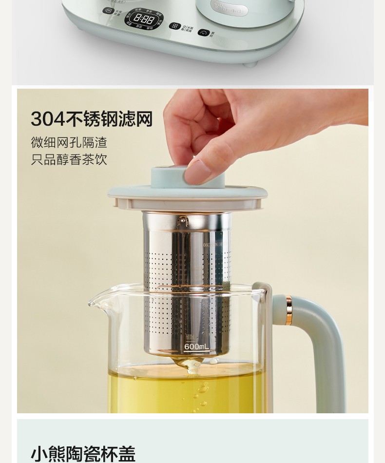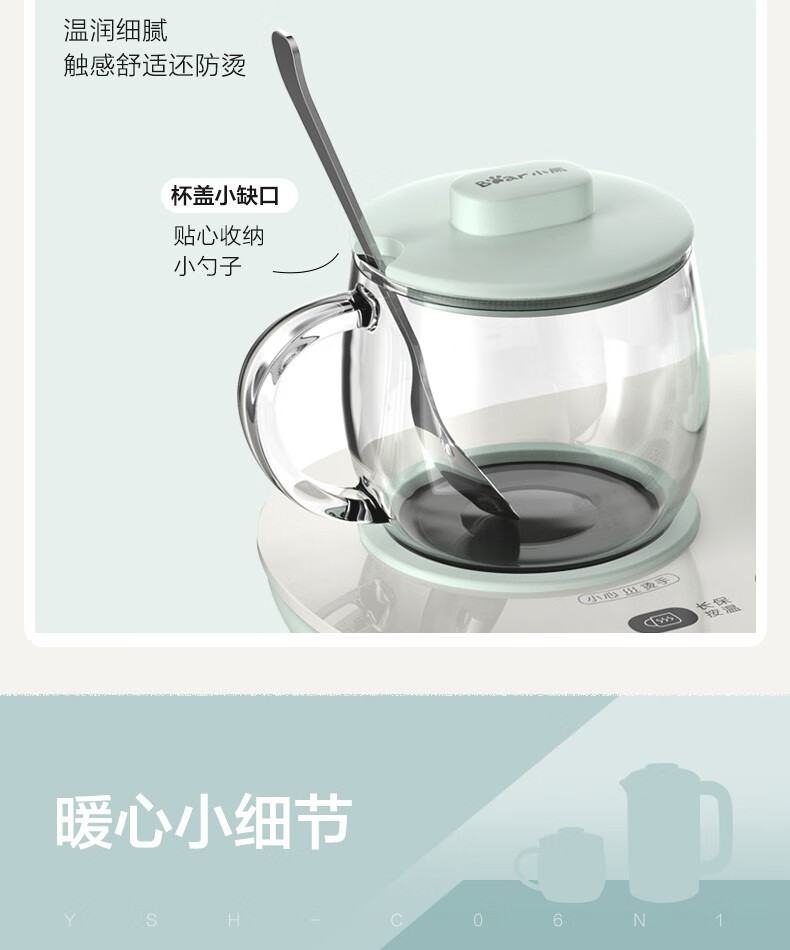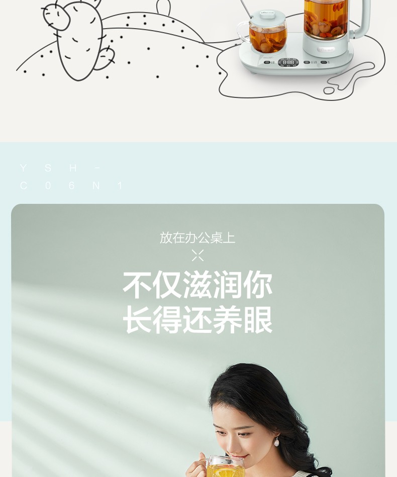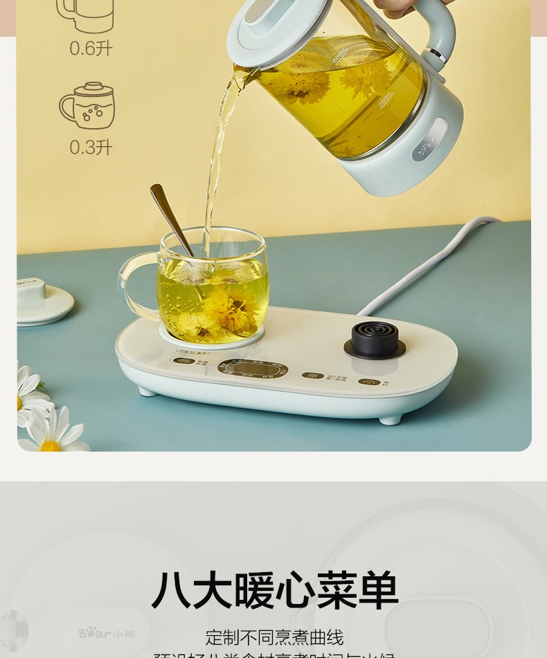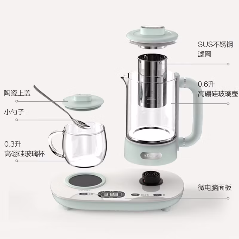 小熊(bear)养生壶煮茶器花茶壶电热水壶全自动家用迷你办公室玻璃烧水壶 泡煮暖饮二合一 YSH-C06N1 自营