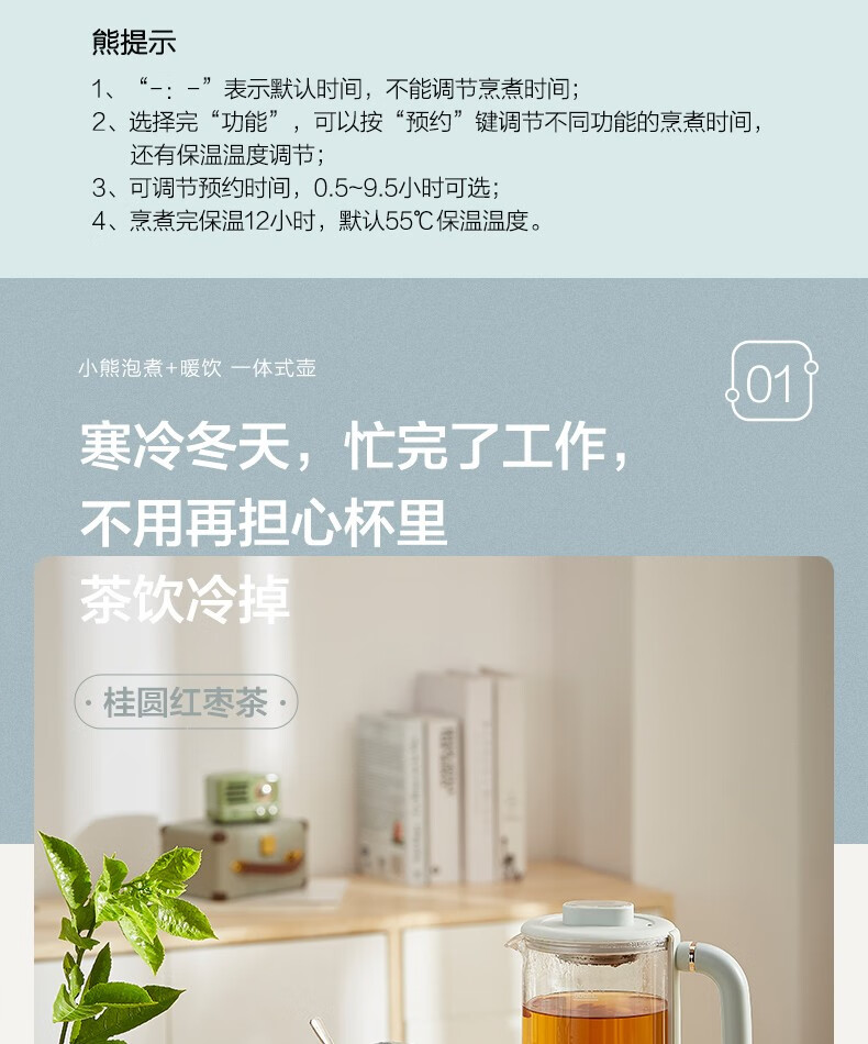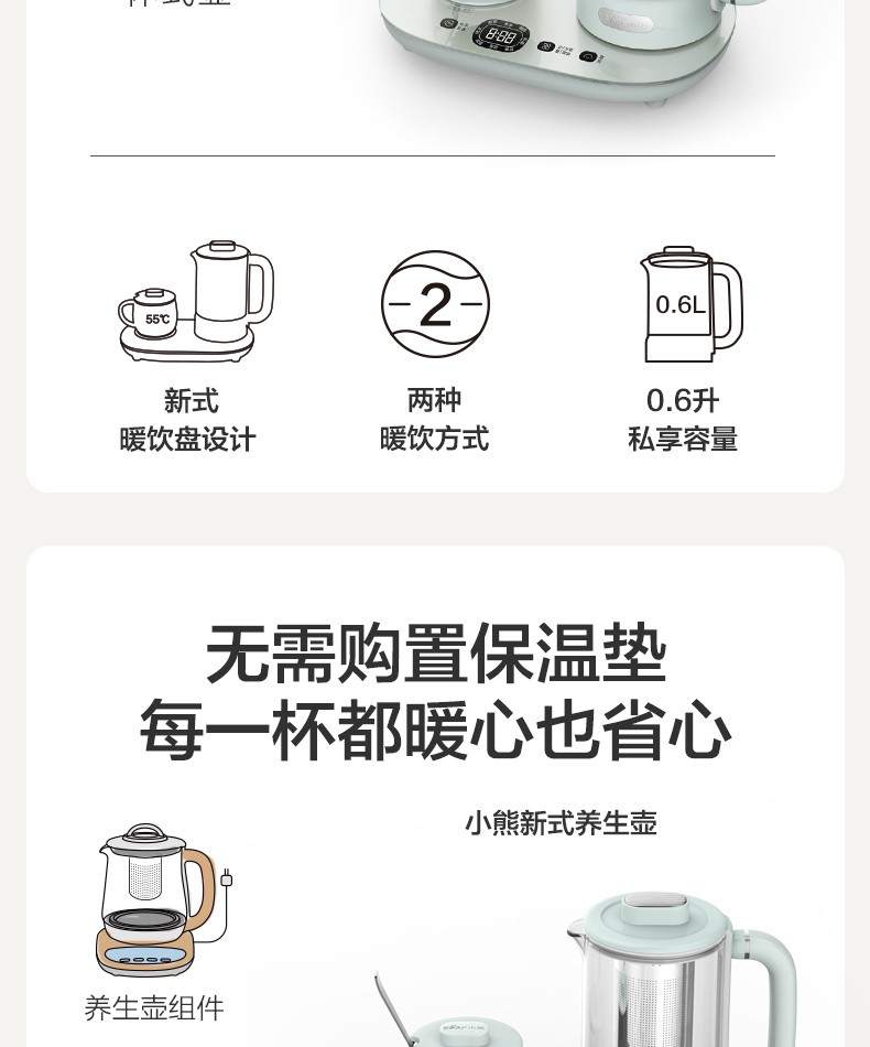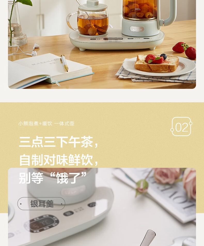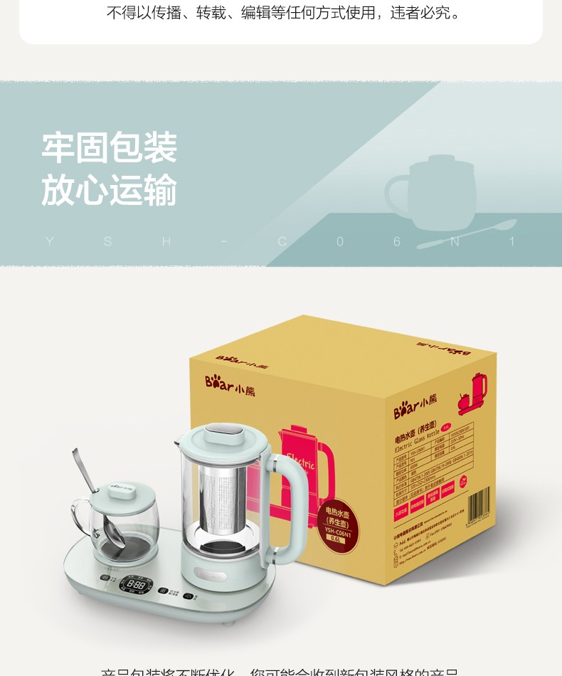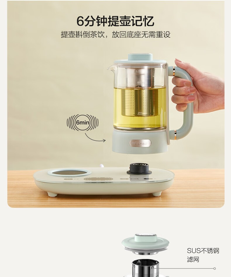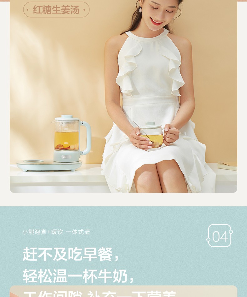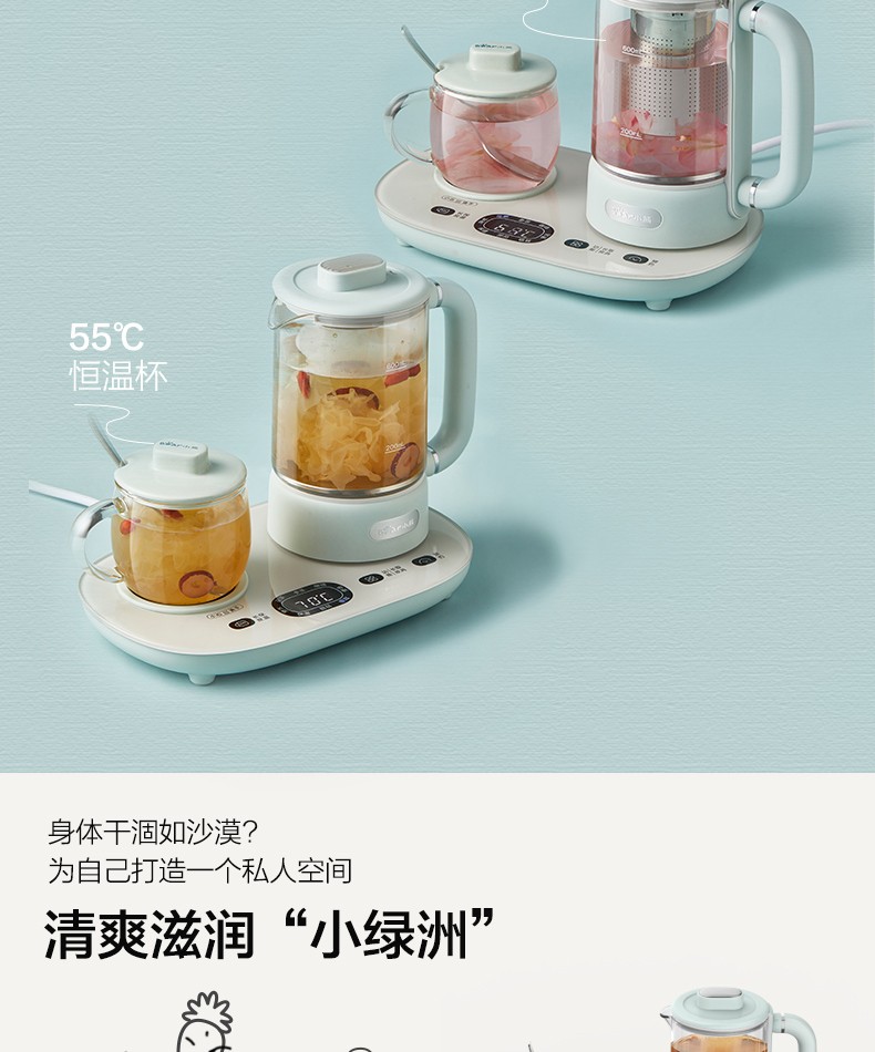 小熊(bear)养生壶煮茶器花茶壶电热水壶全自动家用迷你办公室玻璃烧水壶 泡煮暖饮二合一 YSH-C06N1 自营