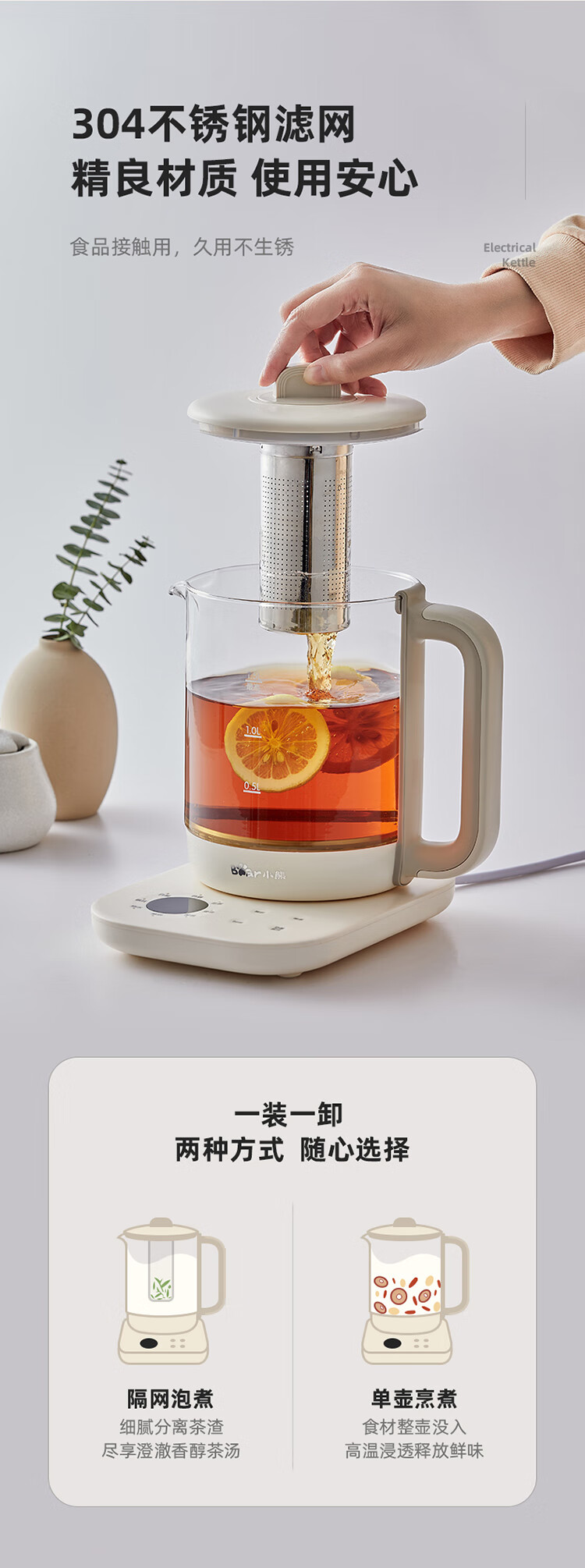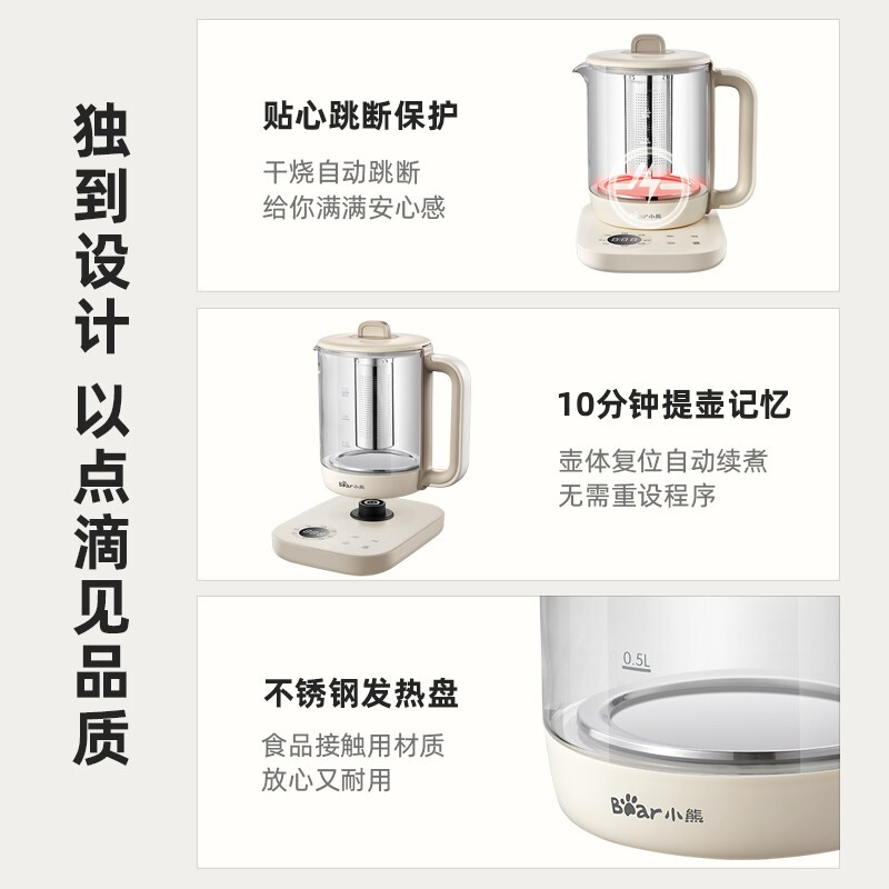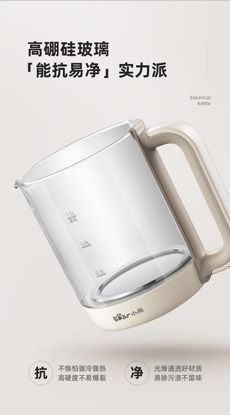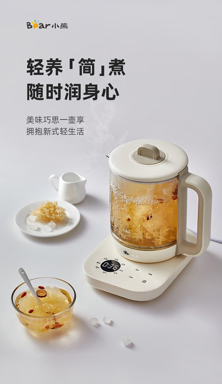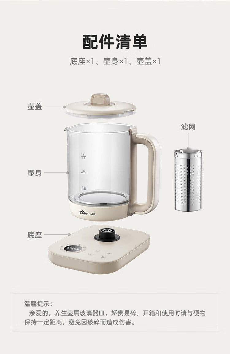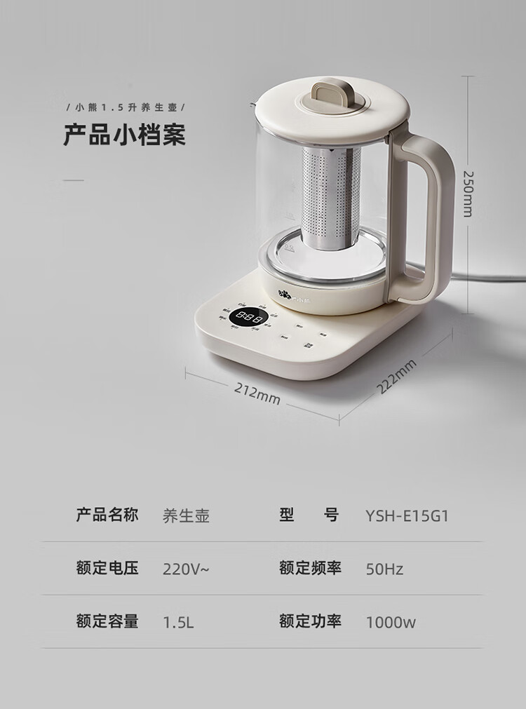小熊(Bear)养生壶 煮茶器 电水壶 热水壶 煮茶壶 恒温电热水壶 迷你玻璃花茶壶 YSH-E15G1 1.5L 烧水壶 自营
