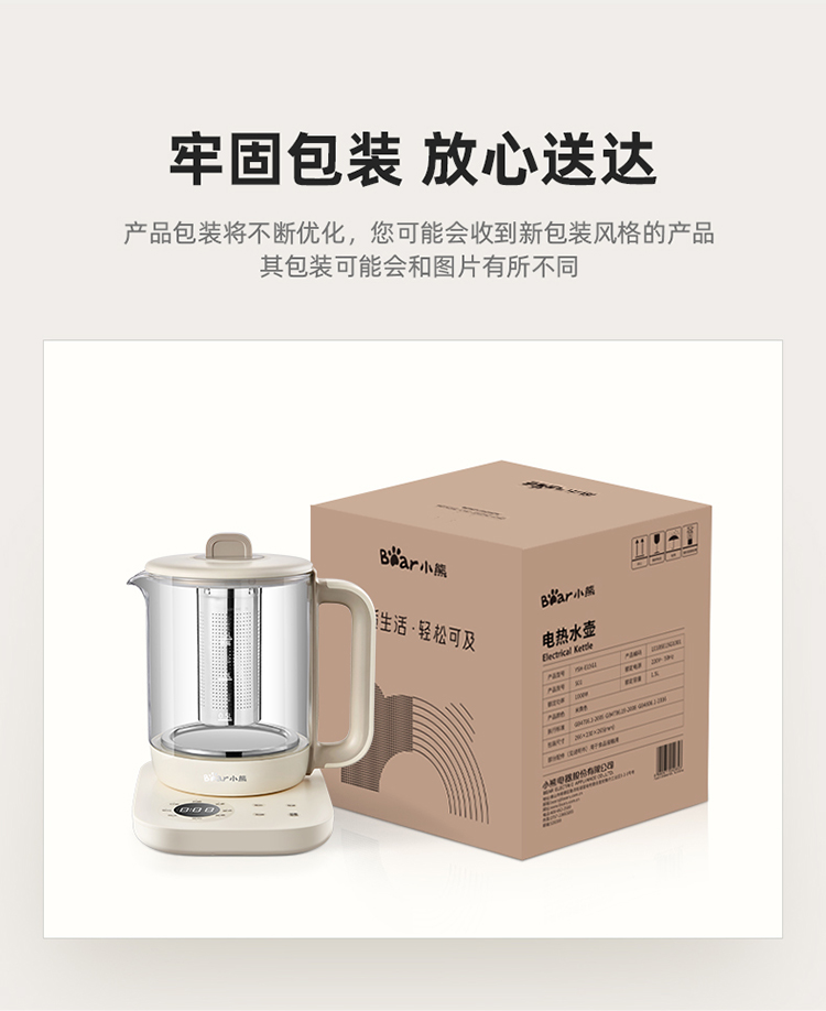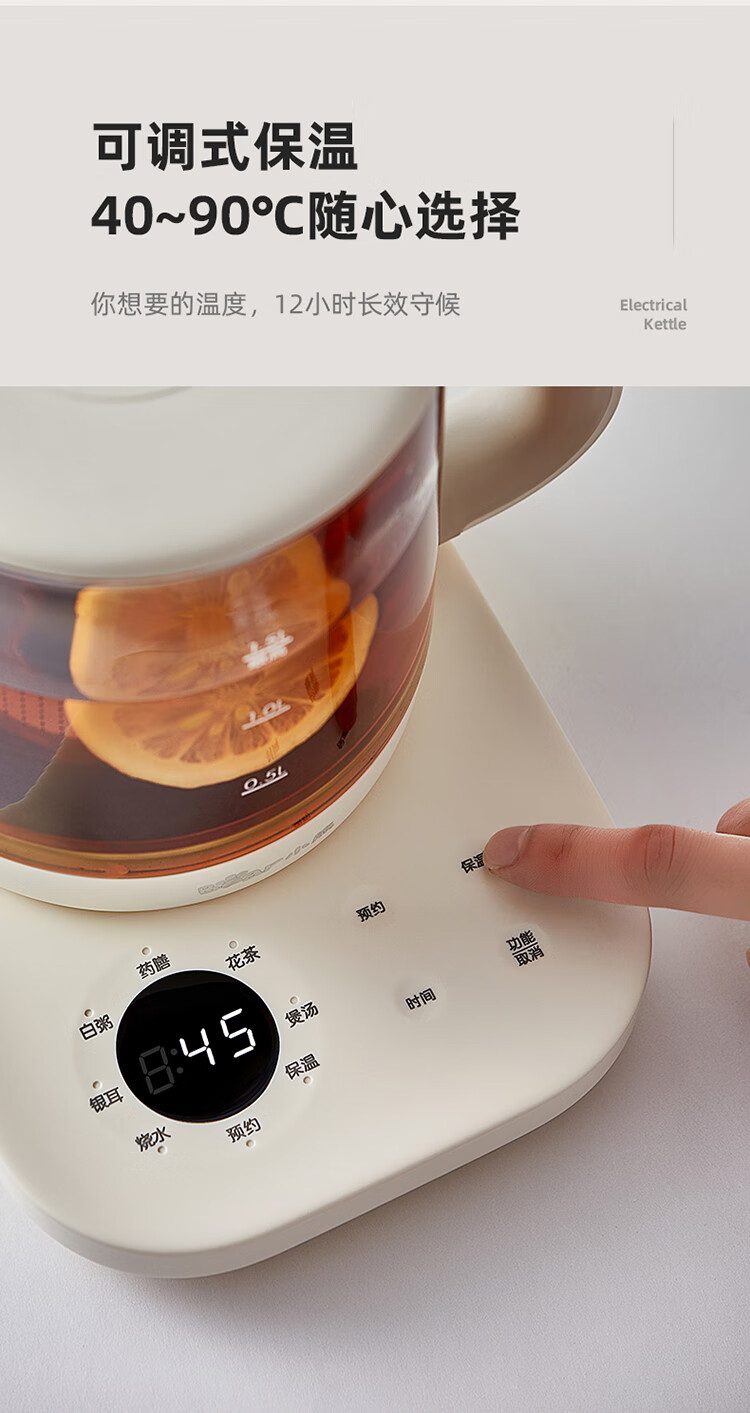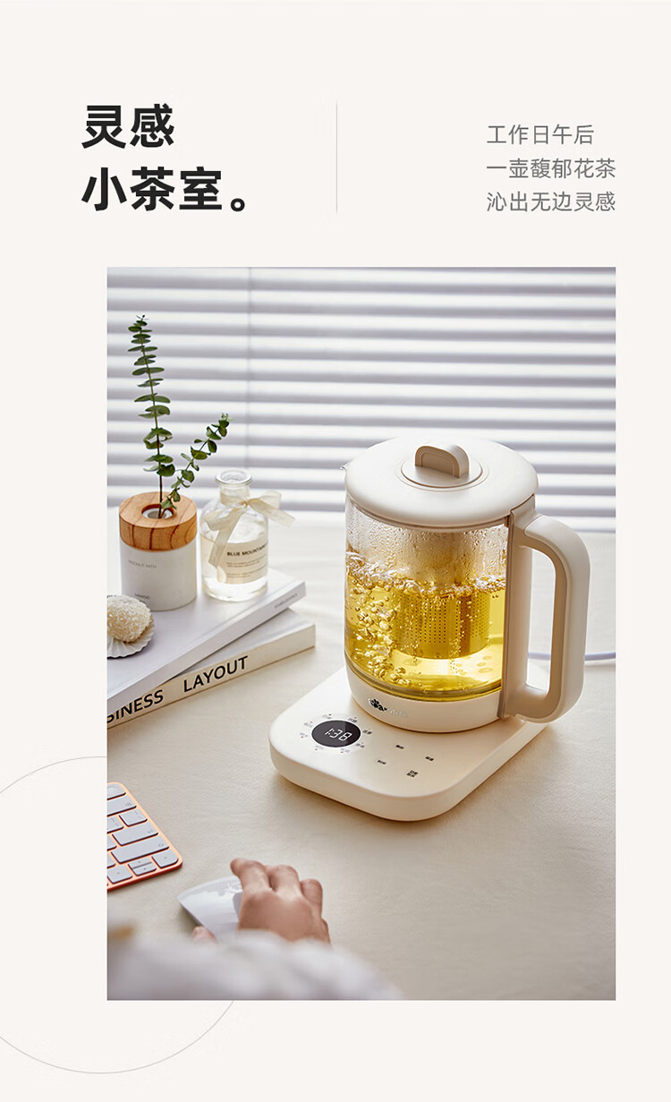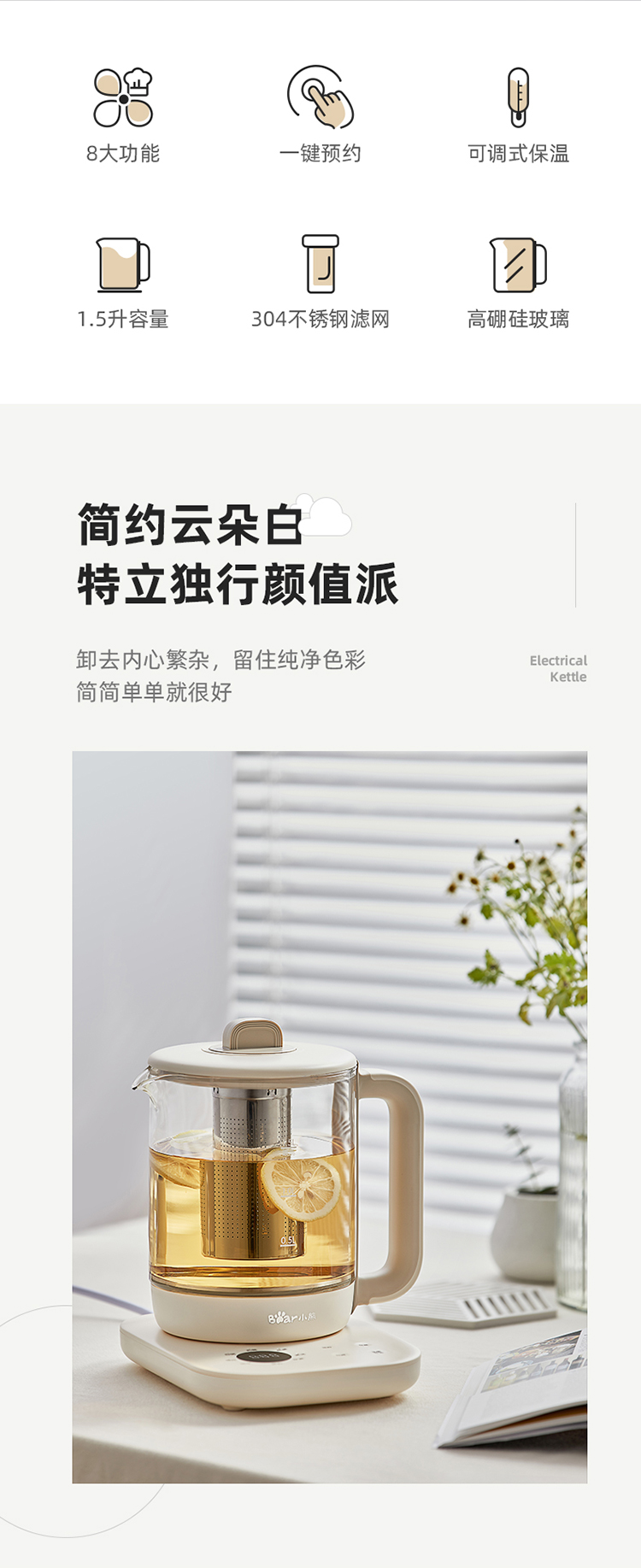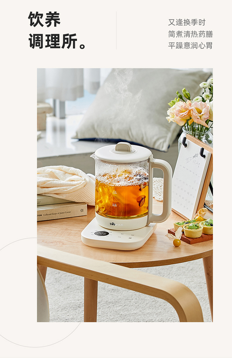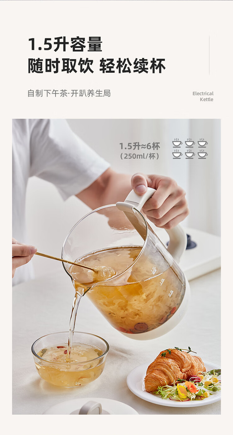 小熊(Bear)养生壶 煮茶器 电水壶 热水壶 煮茶壶 恒温电热水壶 迷你玻璃花茶壶 YSH-E15G1 1.5L 烧水壶 自营