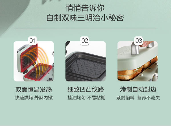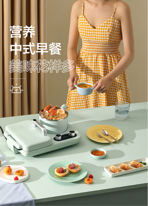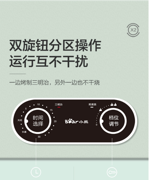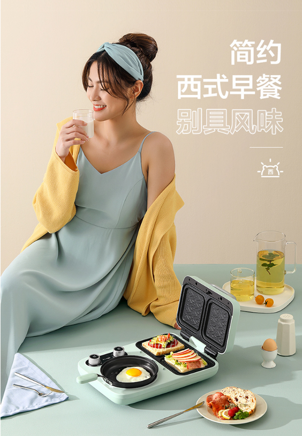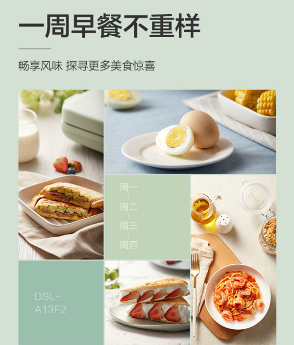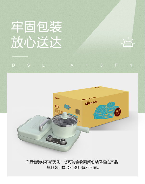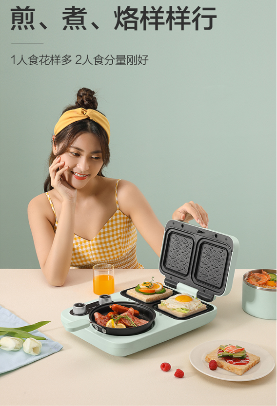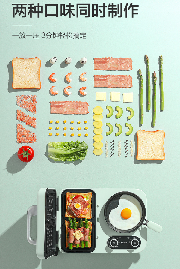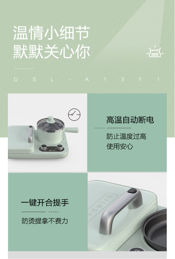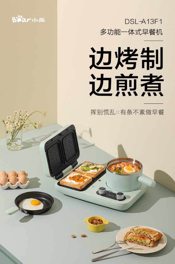 小熊(Bear)早餐机 三明治早餐机多士炉面包机电饼铛电热锅电火锅电蒸锅多功能煎饼锅 DSL-A13F1 自营