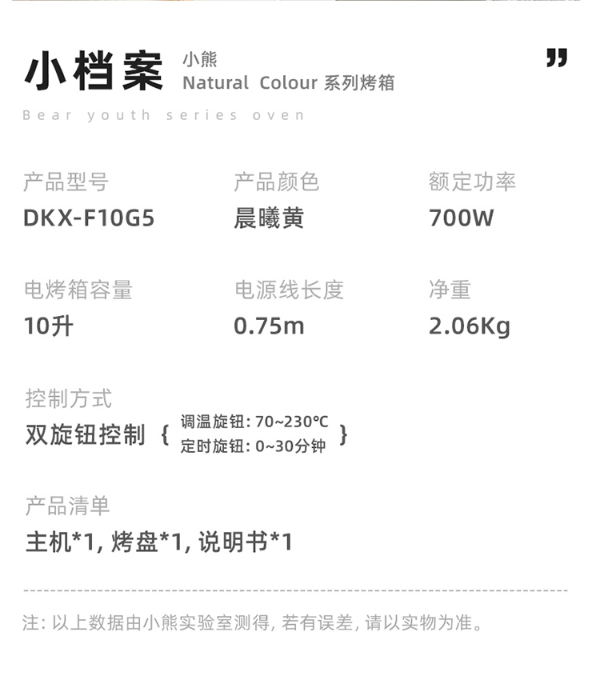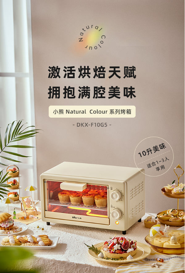 小熊(Bear)烤箱家用 迷你小烤箱 10L小容量多功能 双层烤位S型发热管定时控温 小型电烤箱 DKX-F10G5 自营