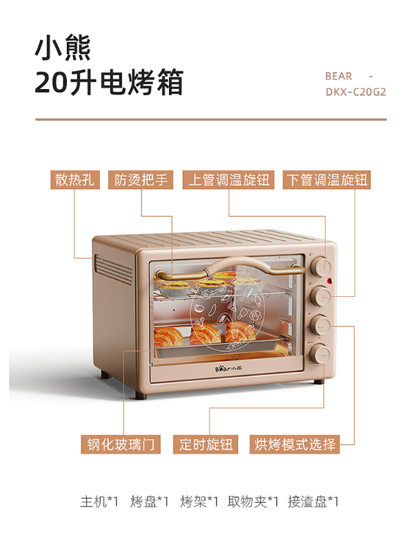 小熊(Bear)电烤箱多功能家用迷你小型独立控温20L烘烤蛋糕烤炉烤箱 DKX-C20G2 自营