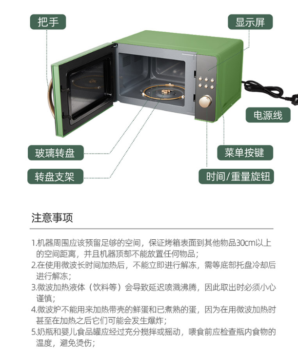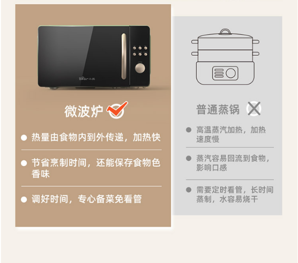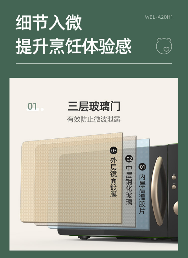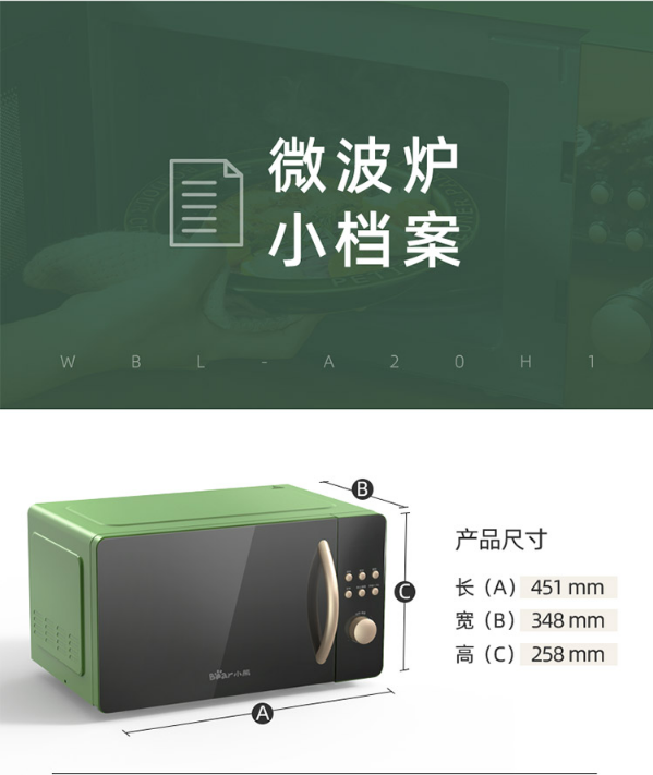小熊(Bear)微波炉 快捷家用 智能触控 360°转盘加热 电烤箱一体机 WBL-A20H1 自营