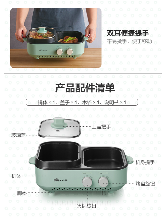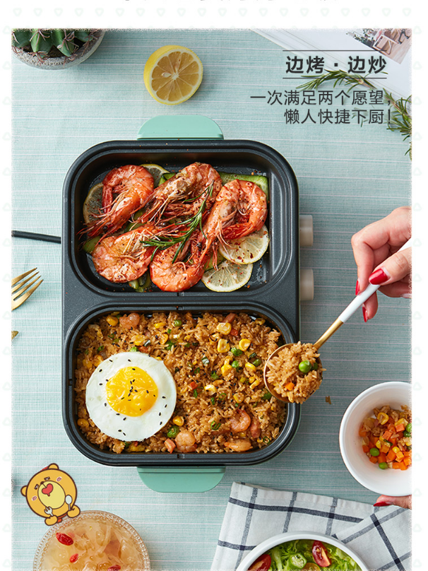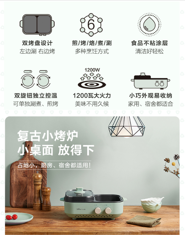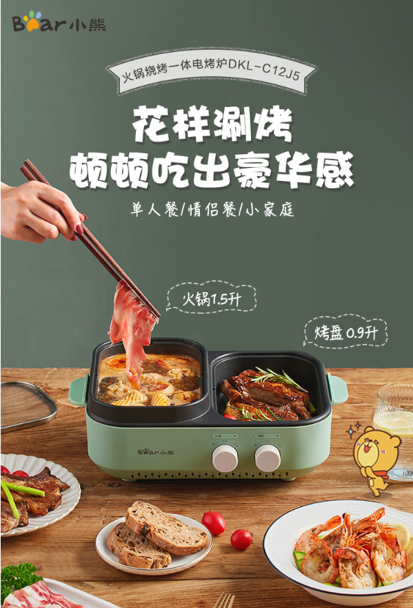 小熊(Bear) 电烧烤炉家用无烟韩式烤盘网红煎涮烤一体锅 DKL-C12J5 自营