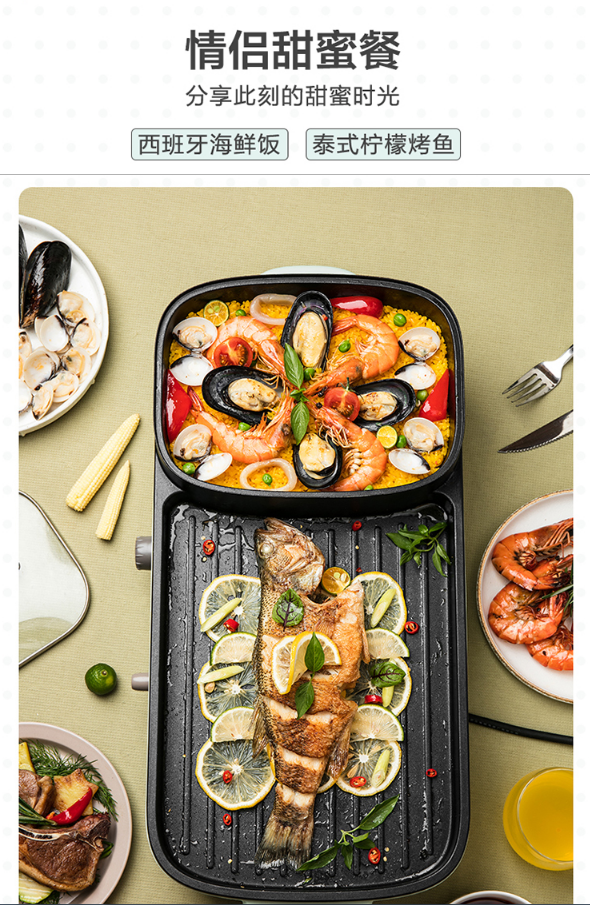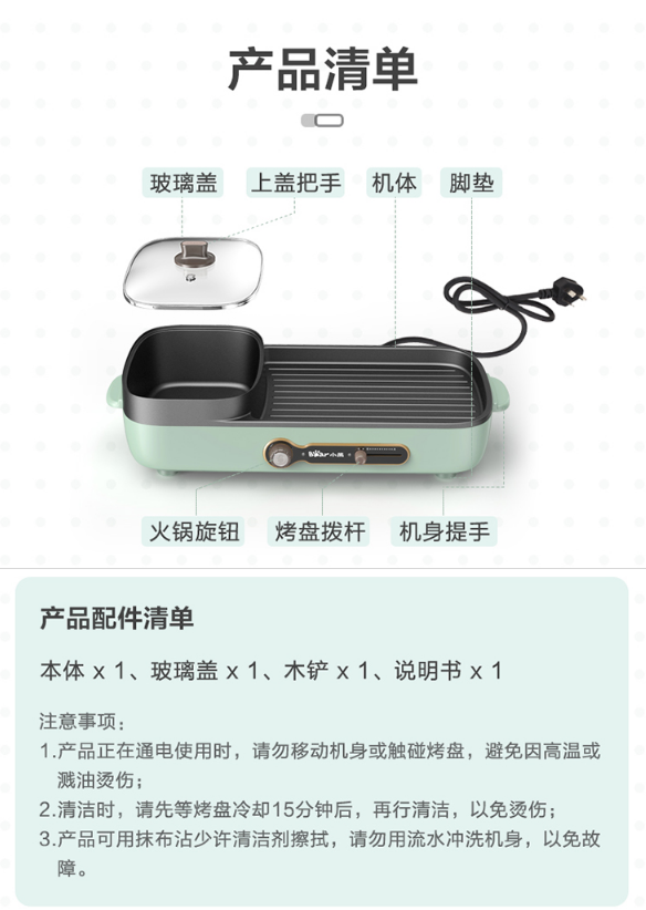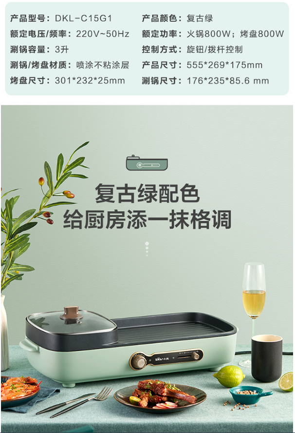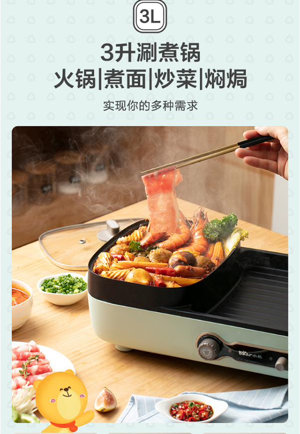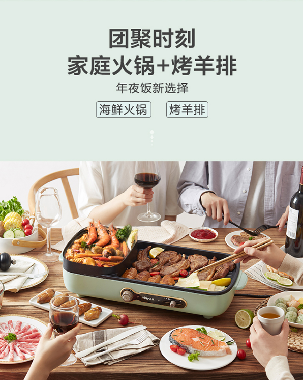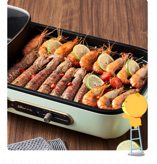小熊(Bear)烤肉锅 烧烤炉 烤涮一体两用锅电烤盘烤肉机家用烤肉盘多功能电火锅电烤炉DKL-C15G1 自营