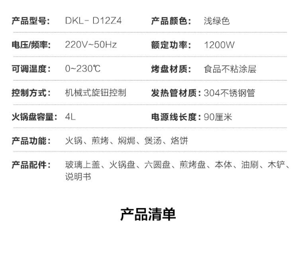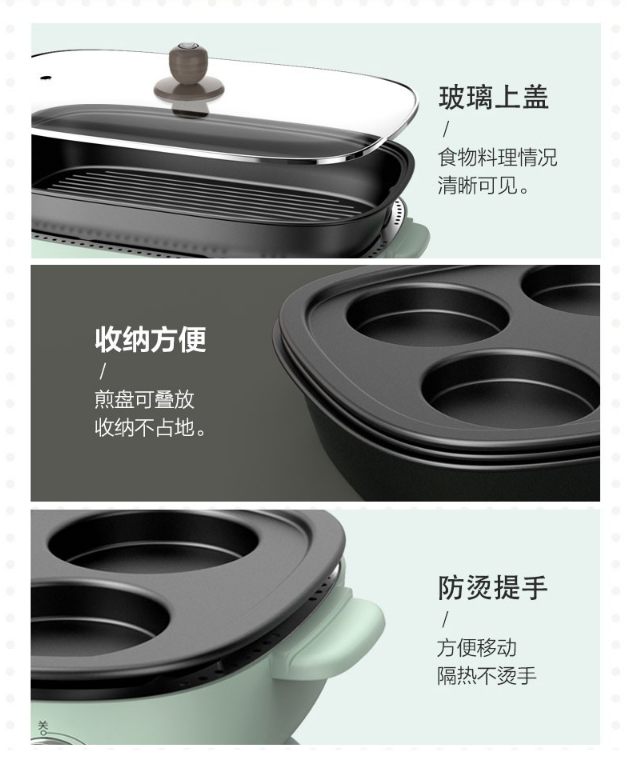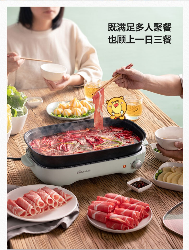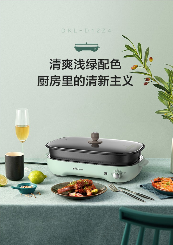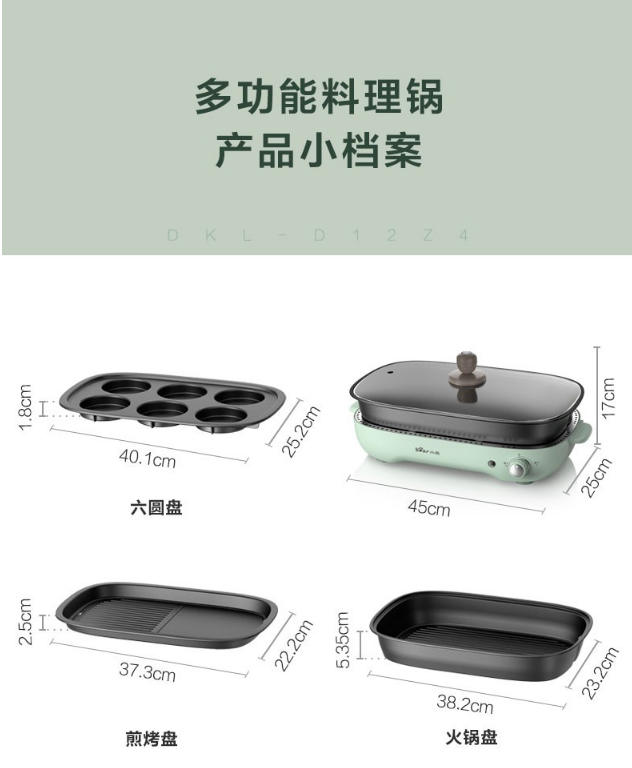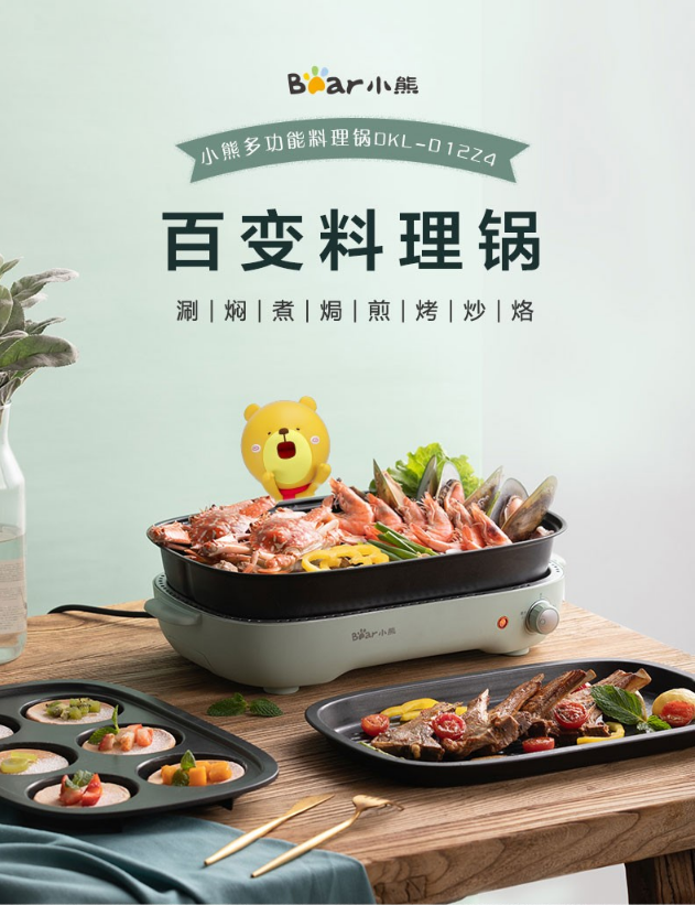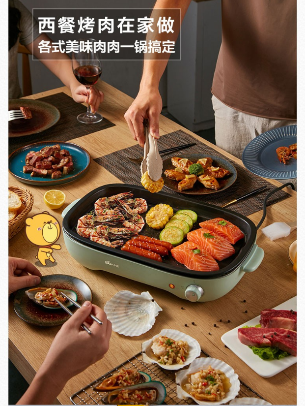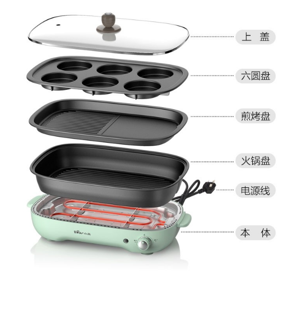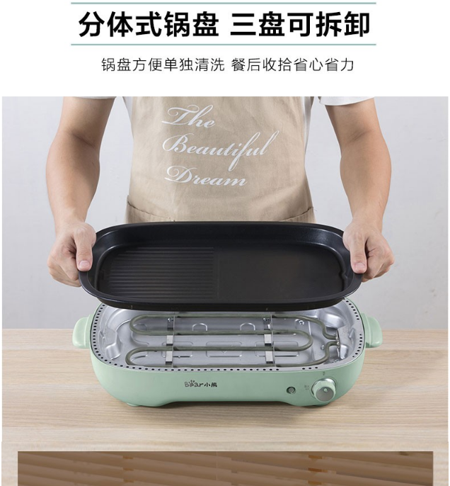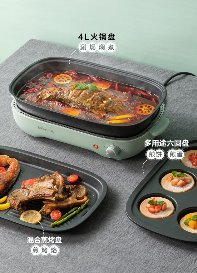 小熊(Bear)电烧烤炉 家用网红多功能料理锅电烤炉烤肉锅电火锅无烟韩式烤盘分体式煎涮烤一体锅 DKL-D12Z4 三盘配置 自营