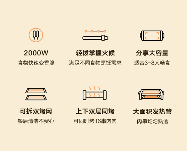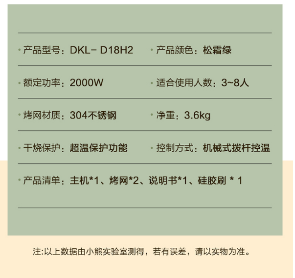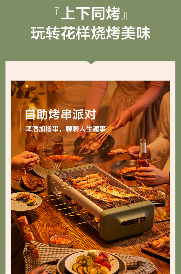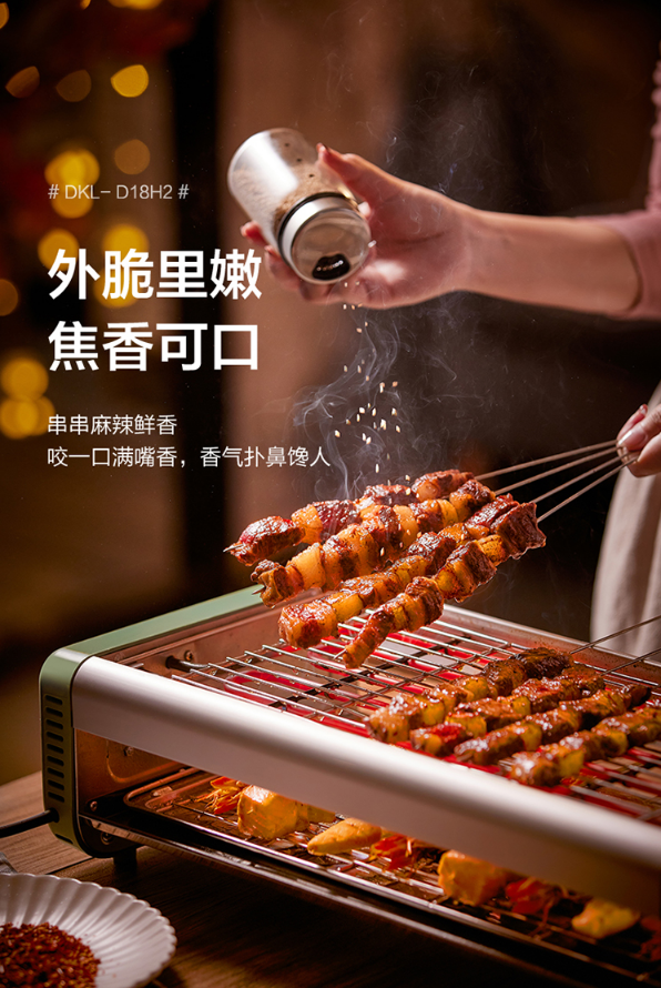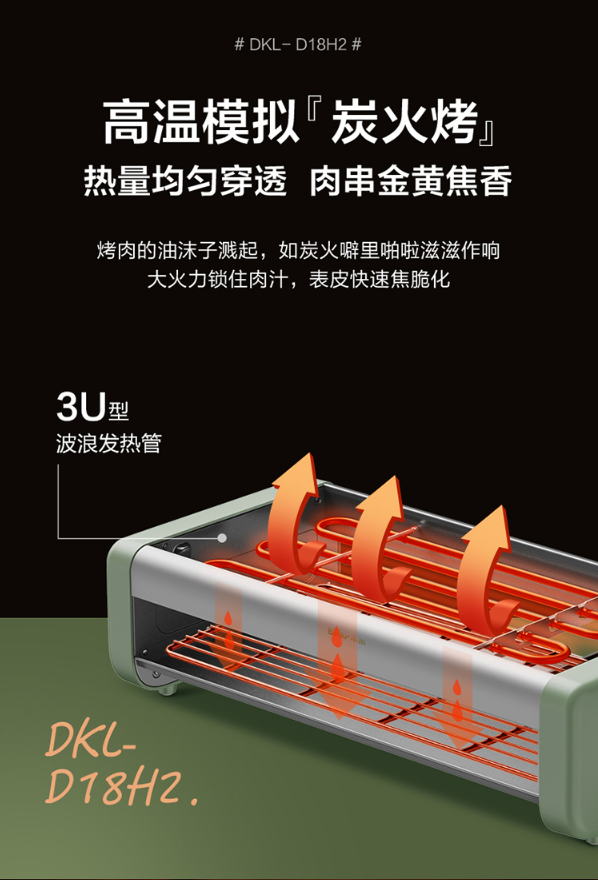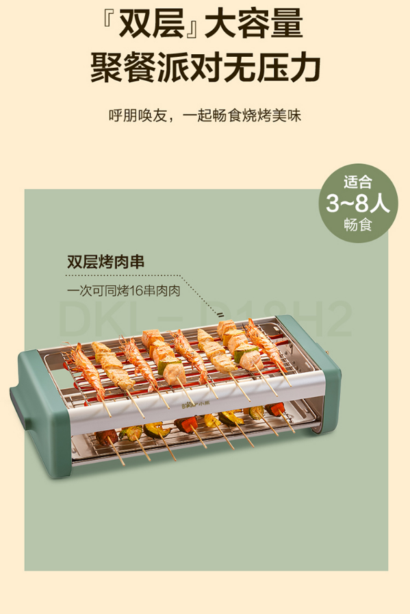 小熊(Bear)烧烤炉 烤串机 烧烤架 烤肉机 家用电烤架电烧烤炉多功能大容量不粘电烤炉DKL-D18H2 自营