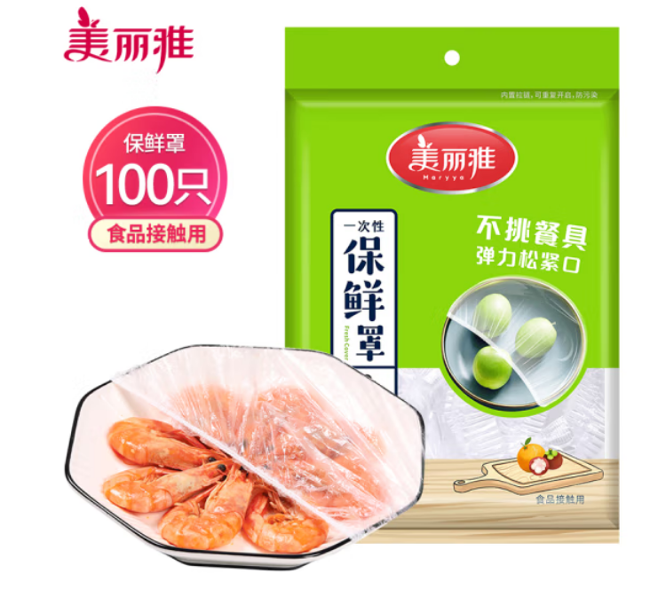 美丽雅 一次性保鲜袋套100只装食品保鲜膜套 保鲜袋罩保鲜膜罩自封口盖套 剩饭菜保鲜罩碗罩大小通用 自营