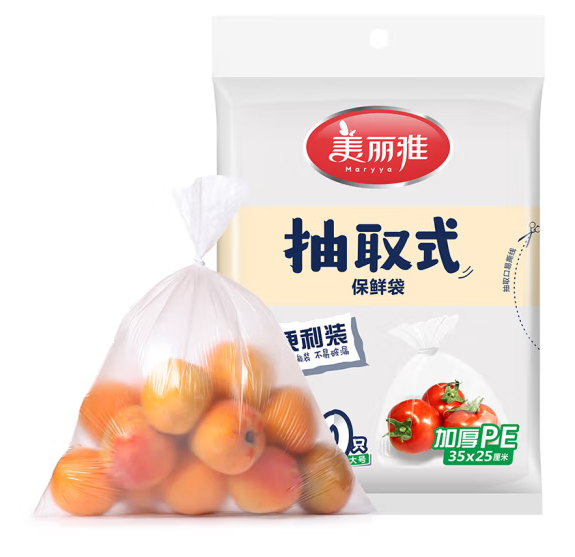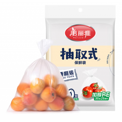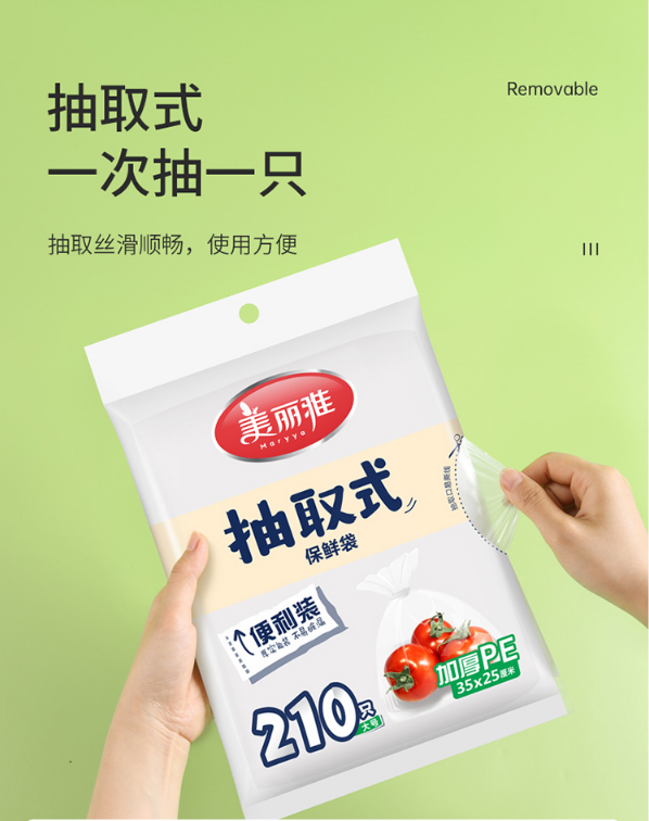 美丽雅 一次性抽取式保鲜袋210只大号35*25cm 方便袋食品级家用厨房冰箱冷冻冷藏分装袋 自营