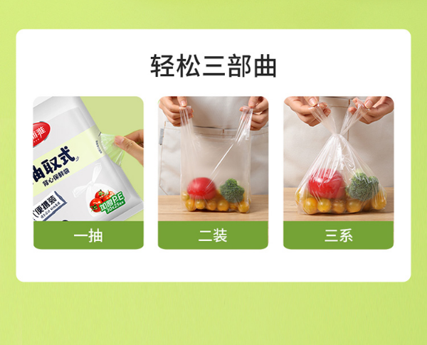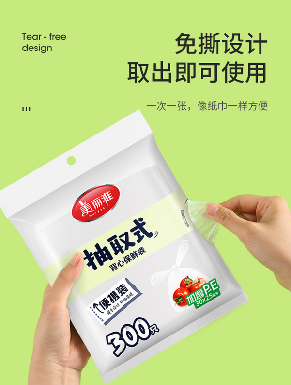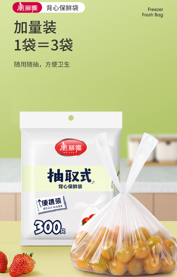 美丽雅 一次性背心式抽取保鲜袋300只30*25cm 食物保鲜方便袋食品级家用厨房冰箱冷冻冷藏分装袋 自营