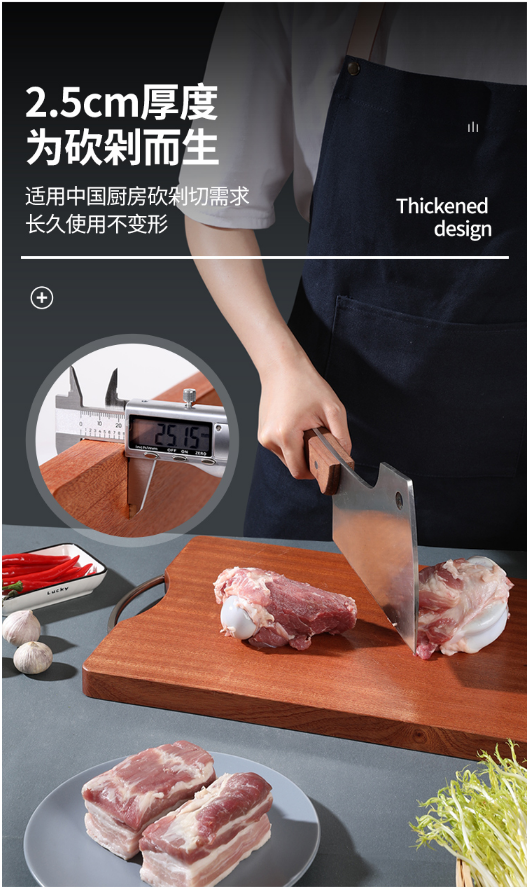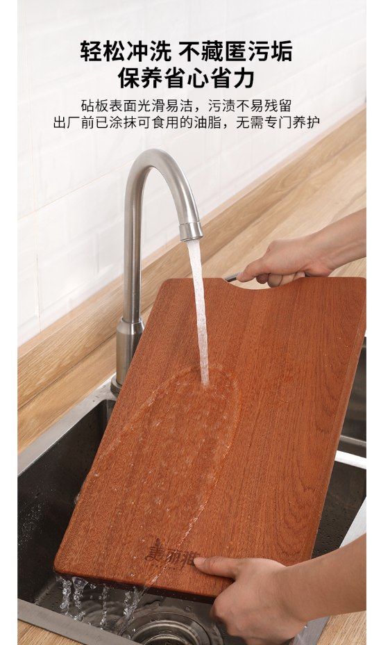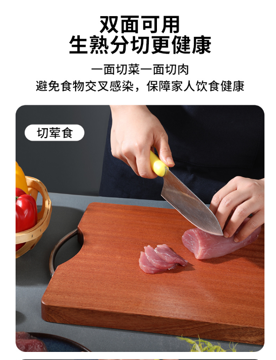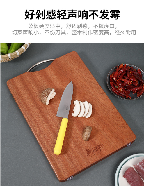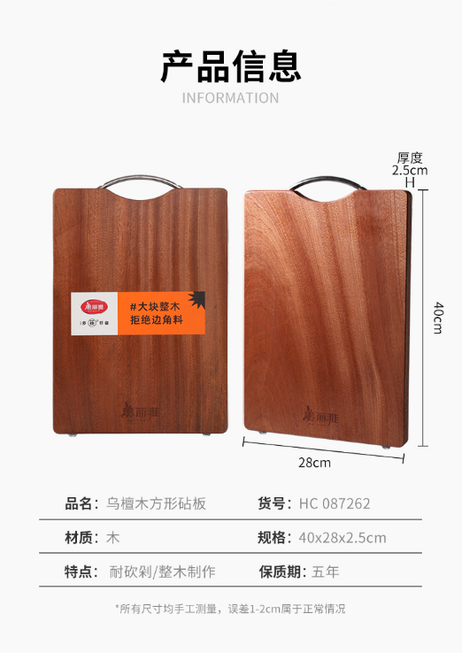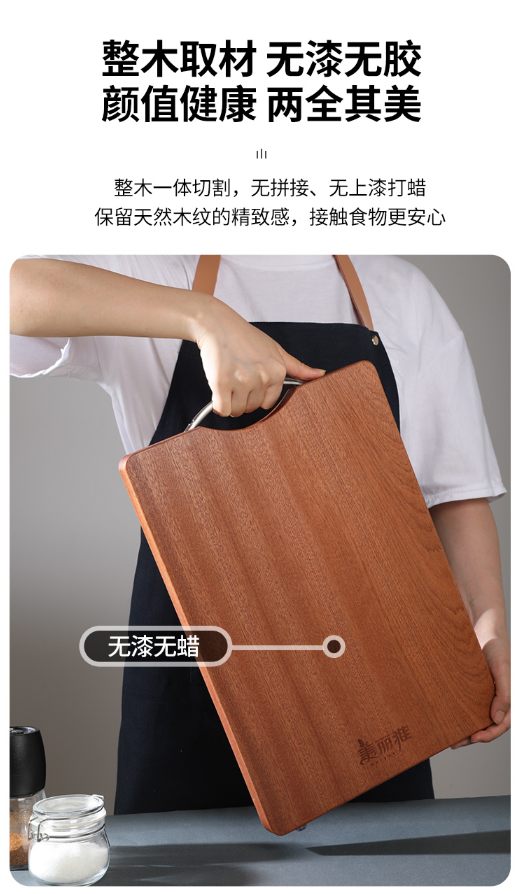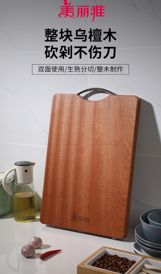 美丽雅切菜板 乌檀木砧板 防霉案板实木大号 耐砍耐剁无漆无蜡 厨房家用整木 40x28x2.5cm 自营