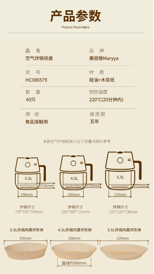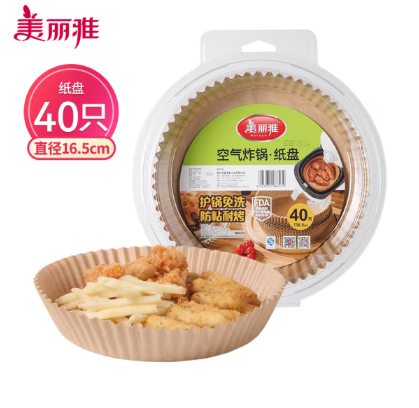 美丽雅 空气炸锅圆形纸盘16.5cm*40只 烧烤烘焙烤肉硅油纸 一次性家用烘焙用纸食物烤纸垫 自营