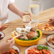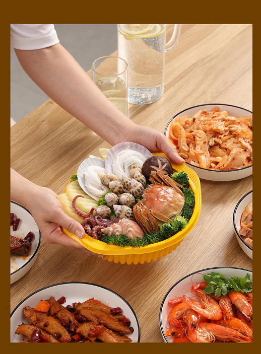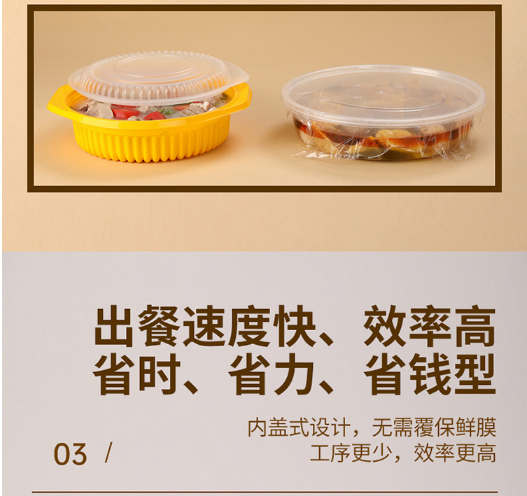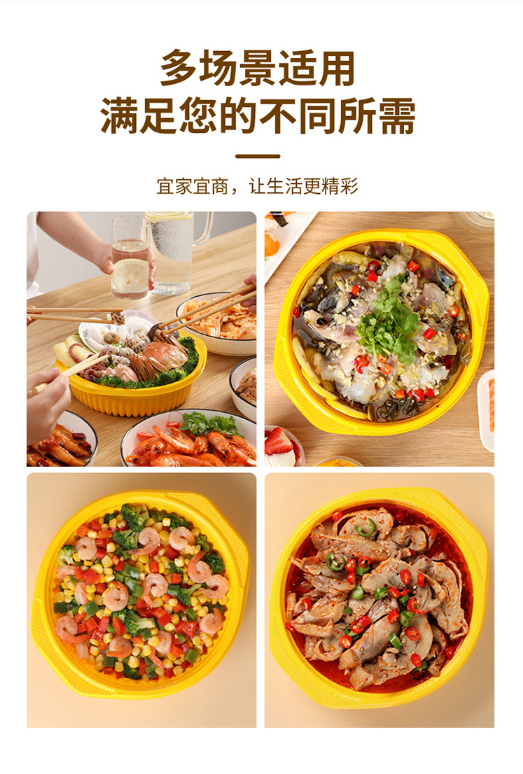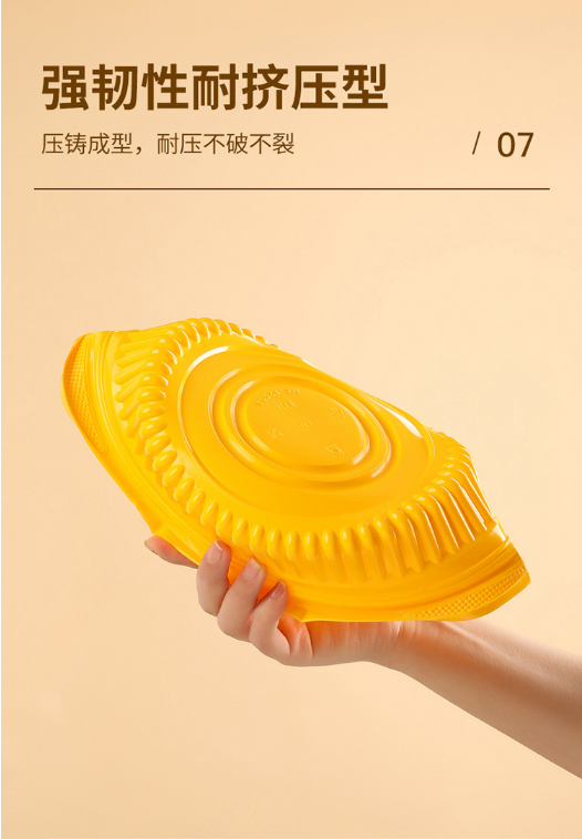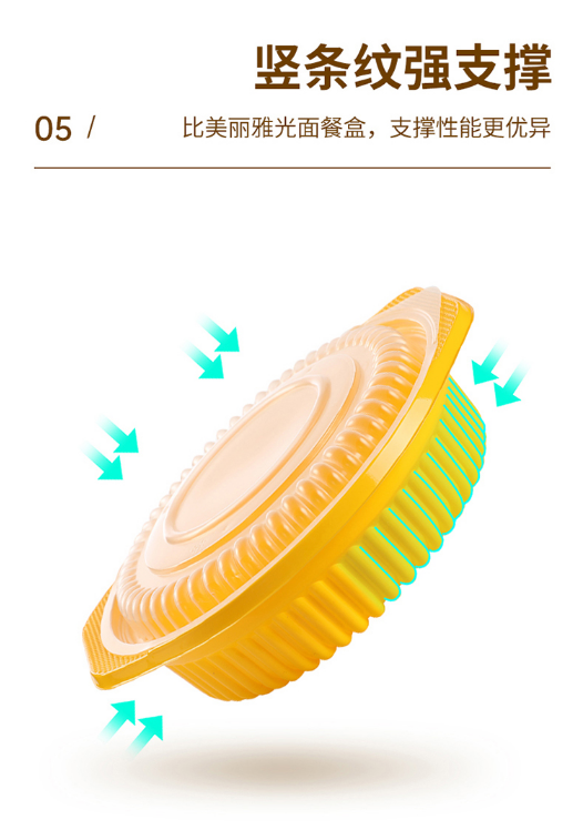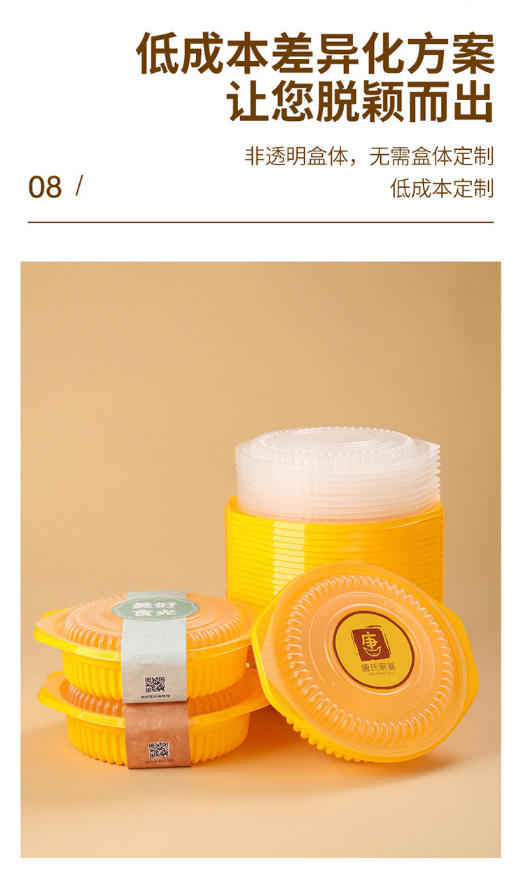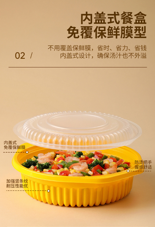 美丽雅 一次性带盖圆形餐盒1350ml*60套 黄色条纹大容量汤碗耐热不易变形烧烤冒菜水果外卖盒 自营