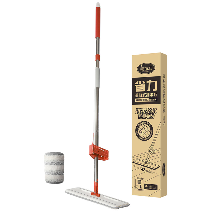 美丽雅 免手洗平板拖把 拖把家用一拖净 省力拖把办公室木地板物业拖地加大42cm拖头 共2替换布 自营