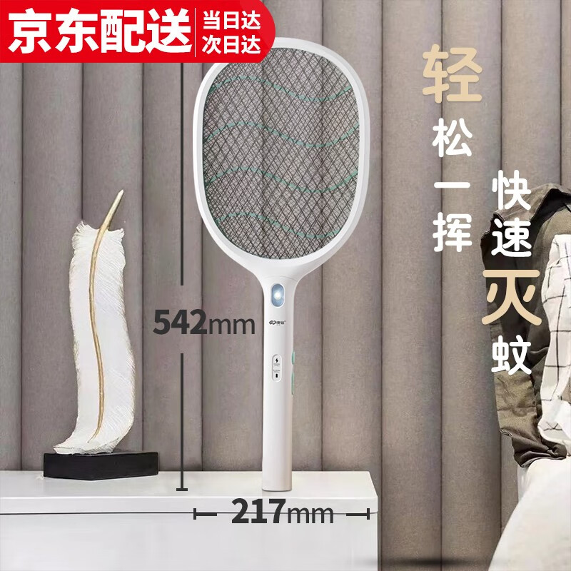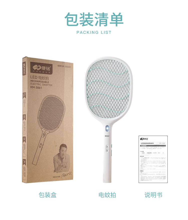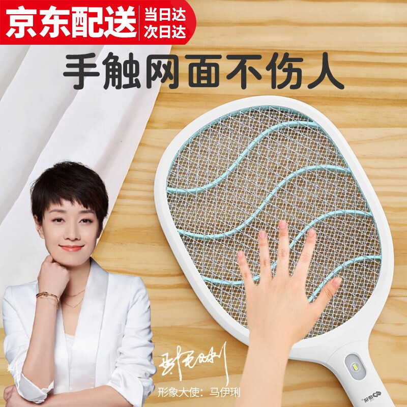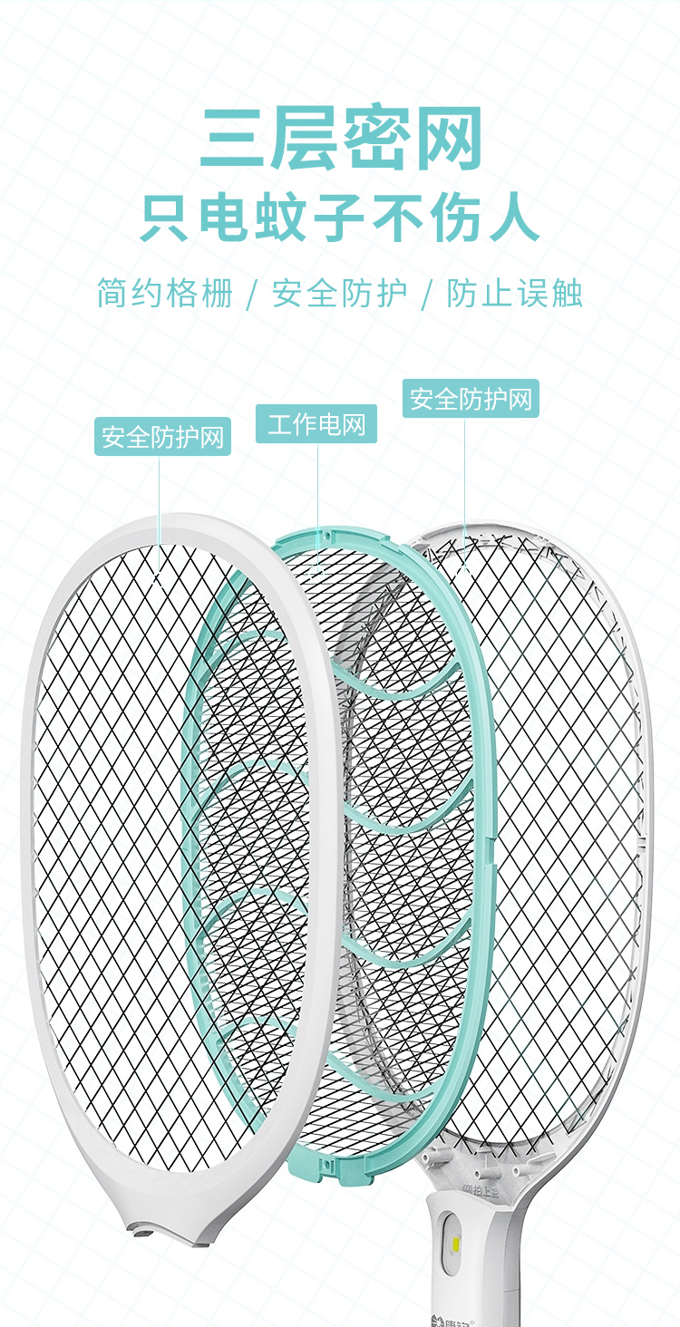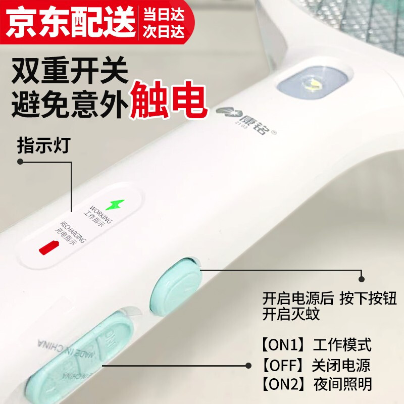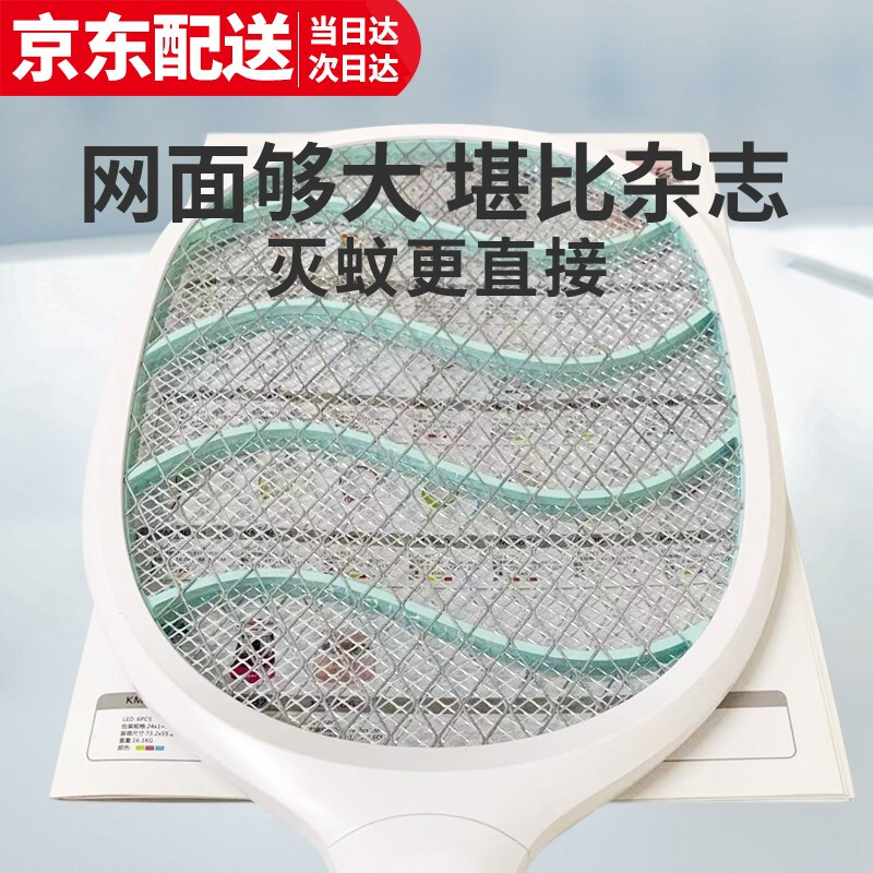 康铭 电蚊拍 充电式家用灭蚊拍驱蚊器苍蝇拍 大网面 LED照明 自营