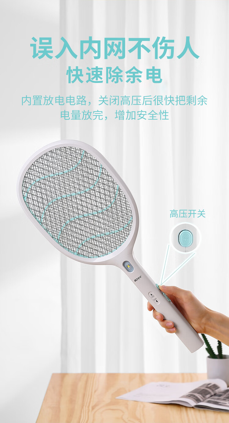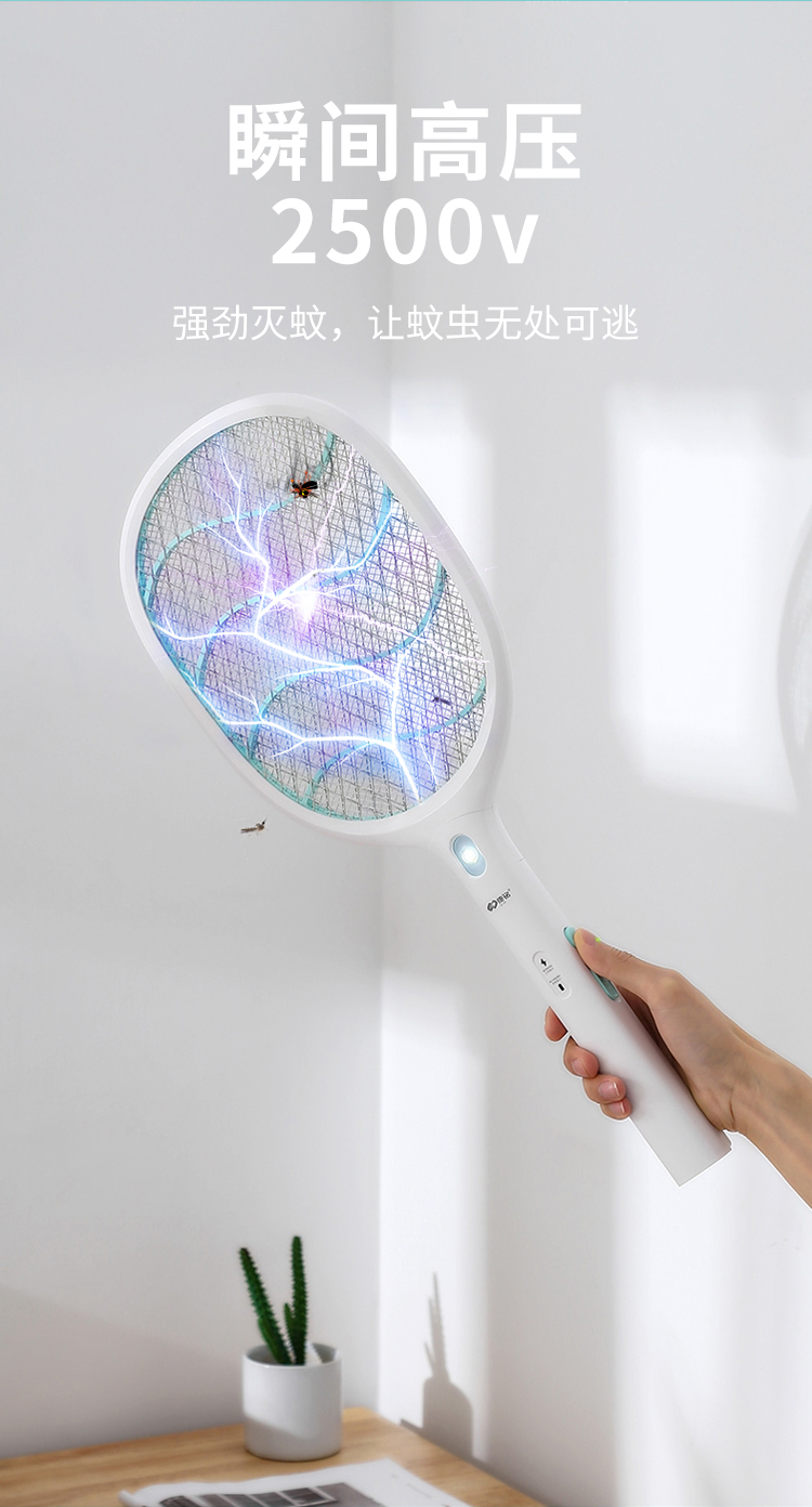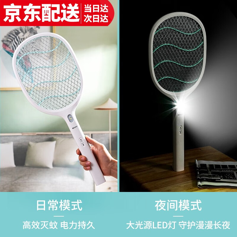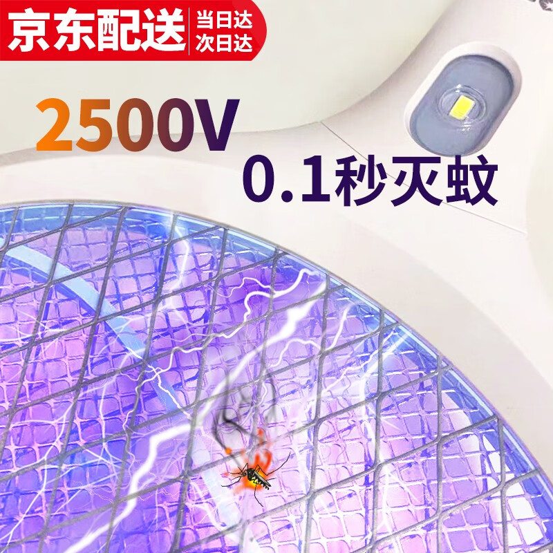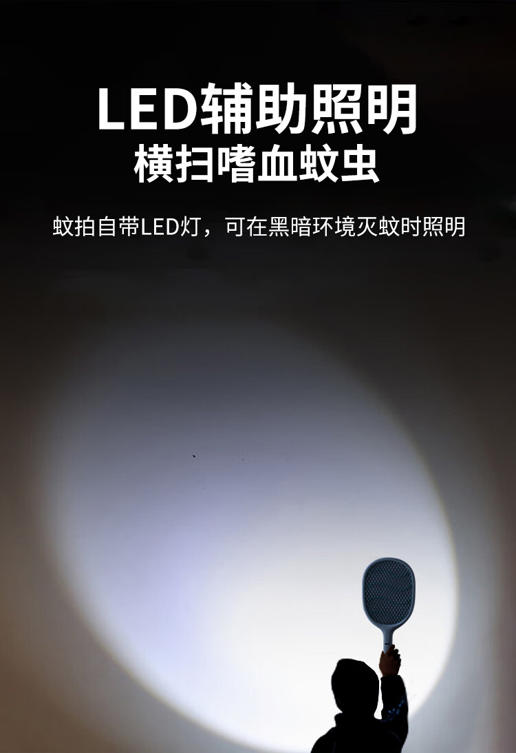 康铭 电蚊拍 充电式家用灭蚊拍驱蚊器苍蝇拍 大网面 LED照明 自营