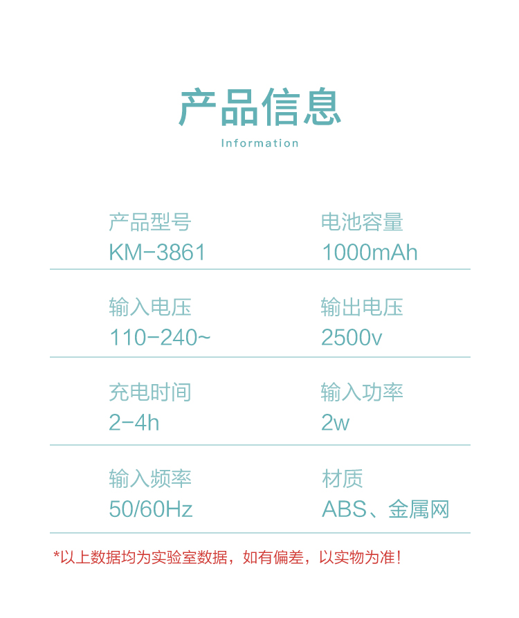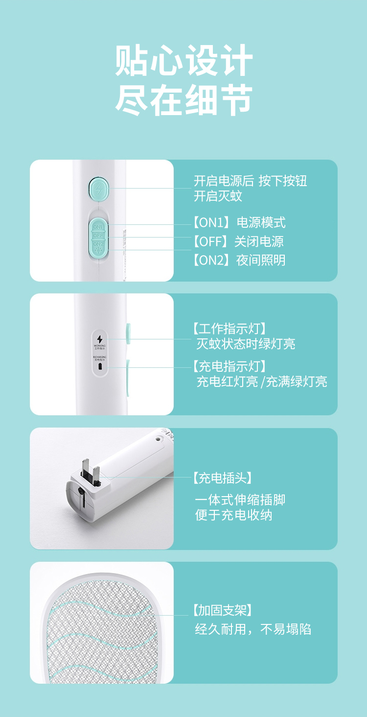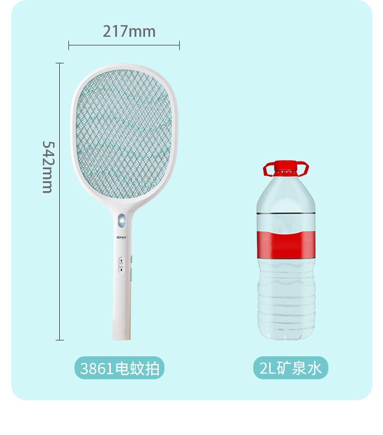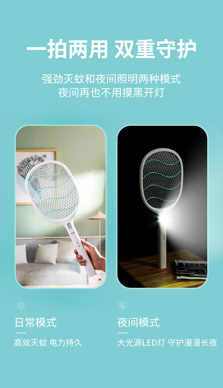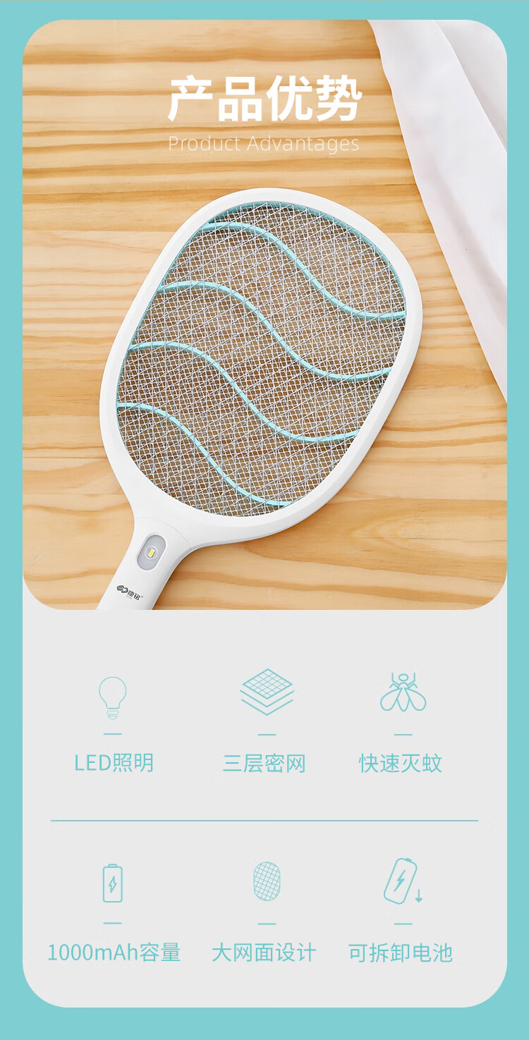 康铭 电蚊拍 充电式家用灭蚊拍驱蚊器苍蝇拍 大网面 LED照明 自营