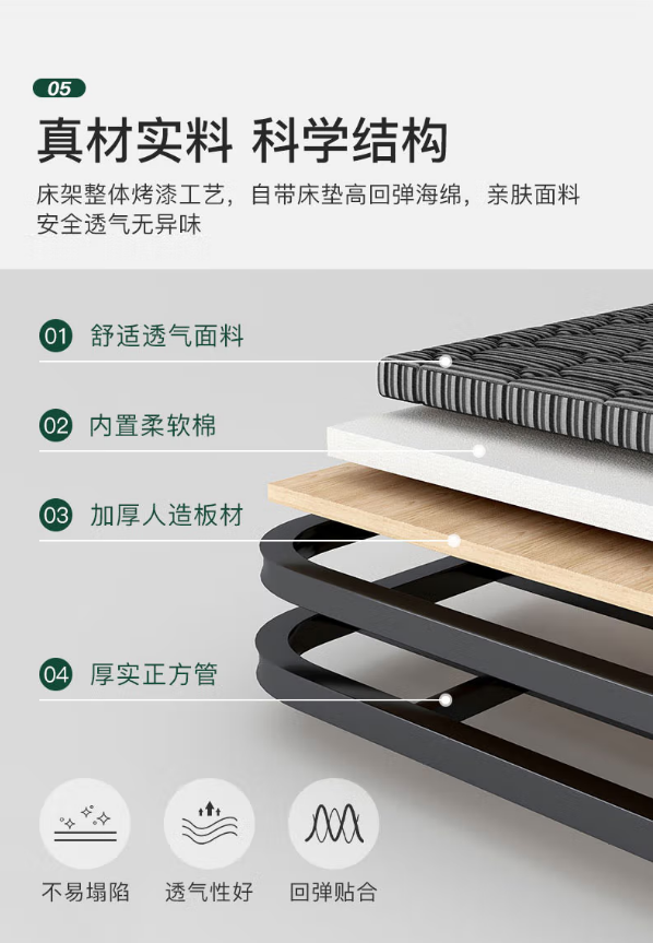 华锐峰 单人折叠床 1900*1000 自营