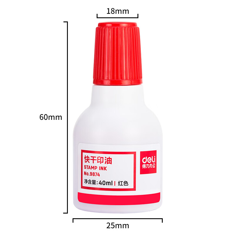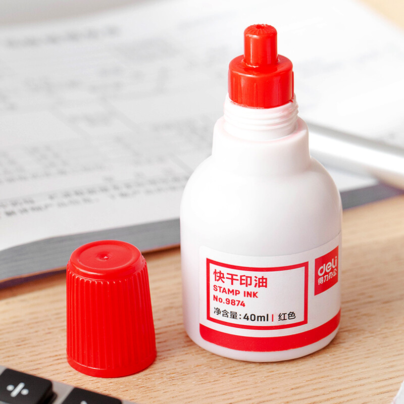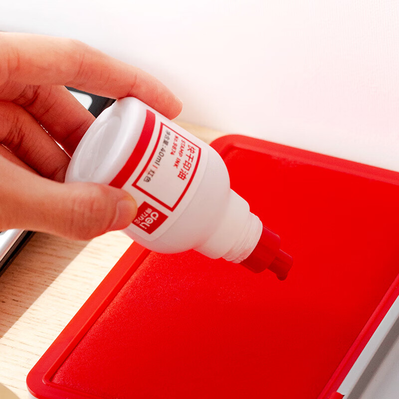 得力(deli)40ml财务印章印泥快干清洁印油 办公用品 红色9874** 自营