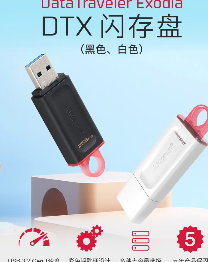 金士顿(Kingston) u盘 USB3.2 Gen 1 DTX高速车载闪存优盘 64G 标品【送 转接头+挂绳】** 自营