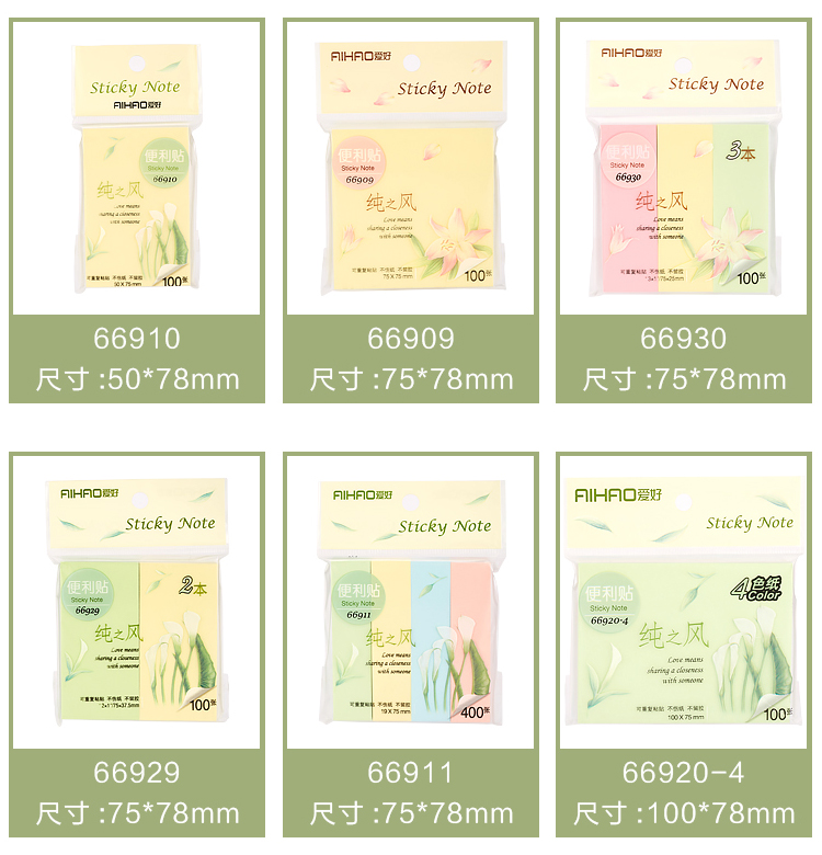 爱好(AIHAO)便签纸/便签本/百事贴/易事贴/便利贴纸条小(尺寸可选)66907 66921-4随机一本 自营