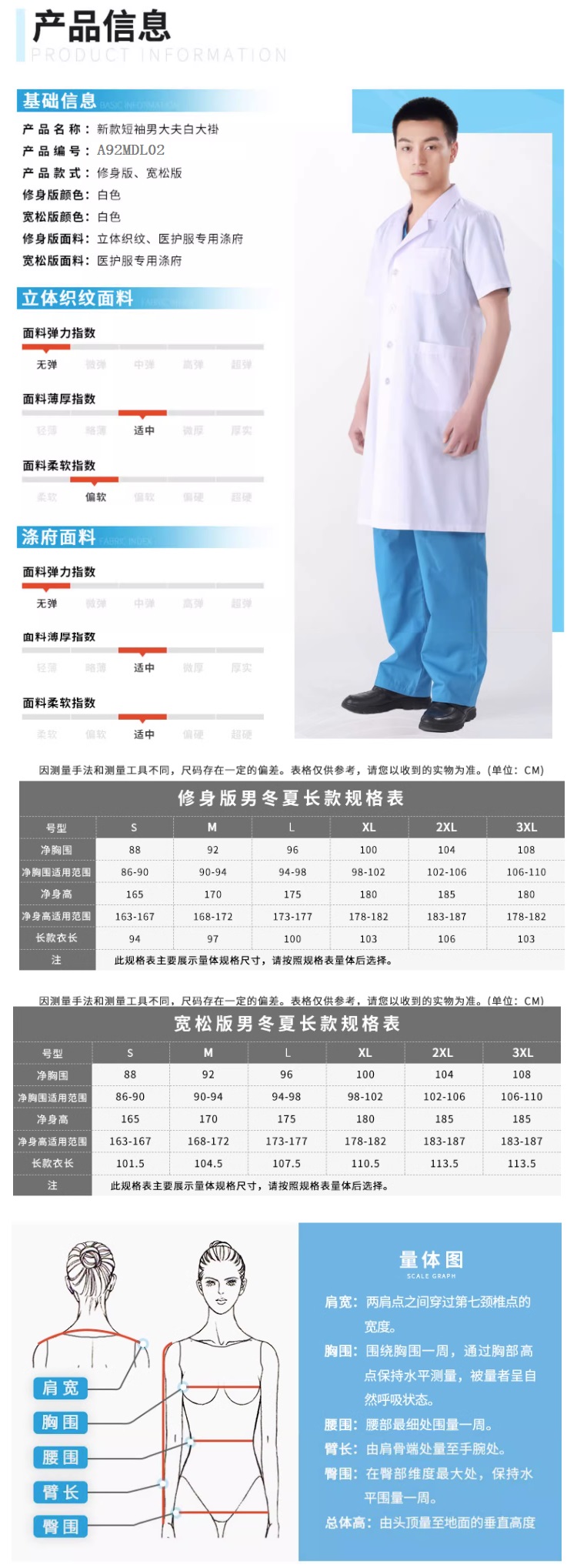 南丁格尔工作服 医生白服 (冬) (男) A92MDL02 单位:件 自营