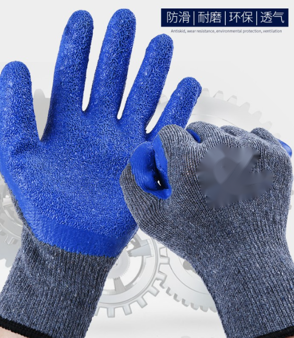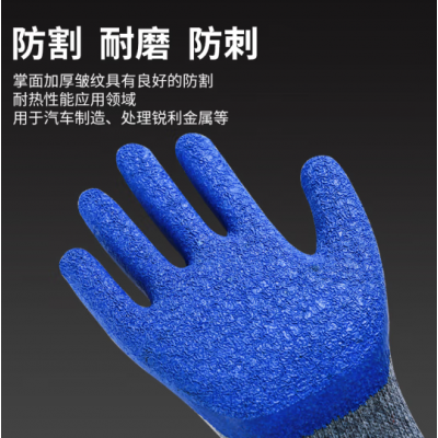 倔强大师10针灰纱蓝乳胶皱纹手套 自营