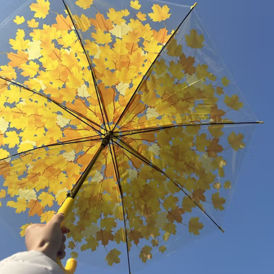 倔强大师半自动钢骨伞架树叶伞 黄色 自营