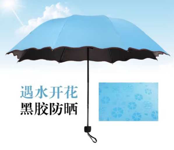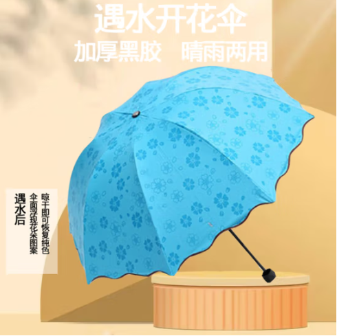 倔强大师遇水开花4节晴雨伞 天蓝色 自营