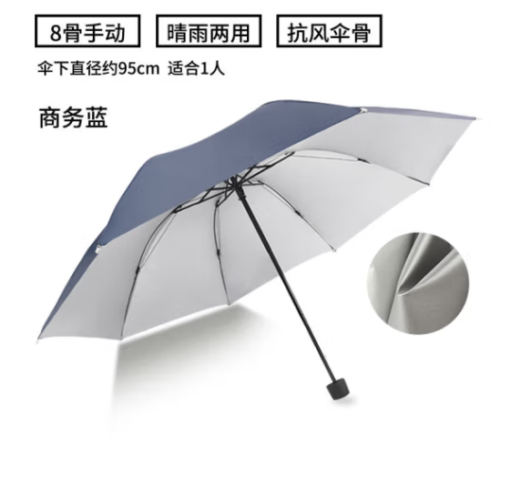 倔强大师银胶8开手动晴雨伞 商务蓝 自营