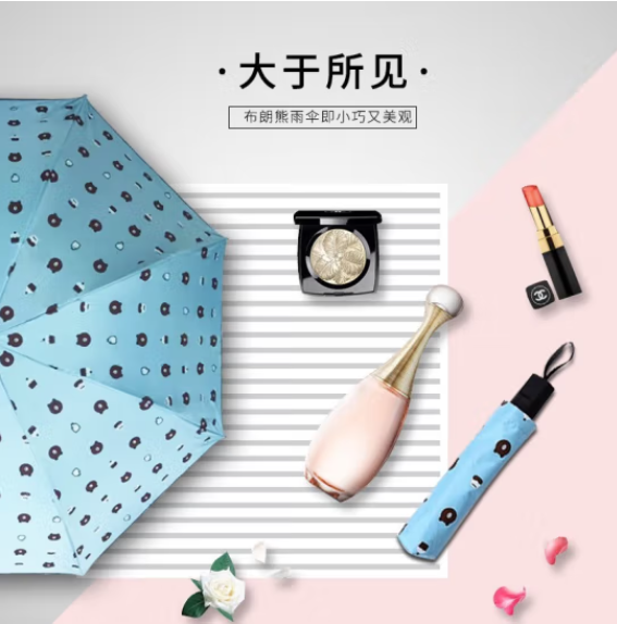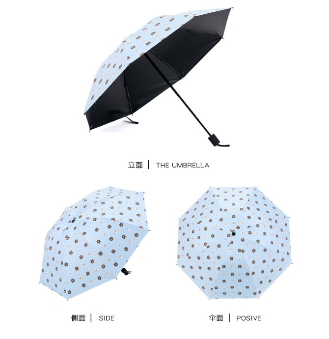 倔强大师小熊黑胶晴雨伞 蓝色 自营