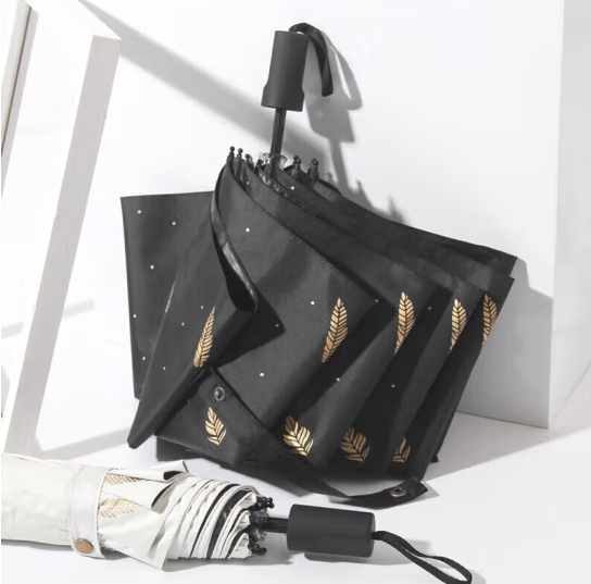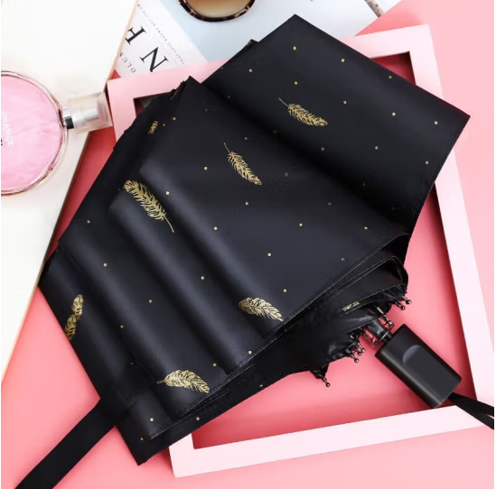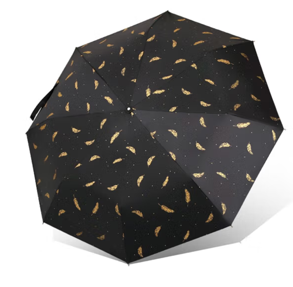 倔强大师羽毛手动晴雨伞 烫金黑羽毛 自营