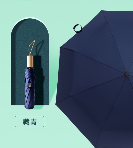 倔强大师九合版木柄自然光手动晴雨伞 藏青色 自营