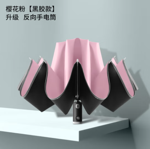 倔强大师3029黑色手电筒反向自然光全自动晴雨伞 樱花粉 自营
