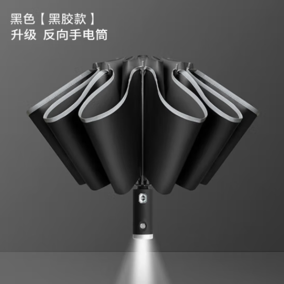倔强大师3029黑色手电筒反向自然光全自动晴雨伞 曜石黑 自营