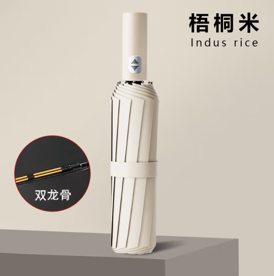 倔强大师全自动十二骨双骨三折黑胶晴雨两用折叠伞 梧桐米 自营
