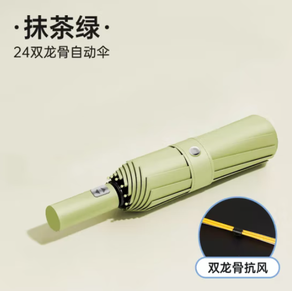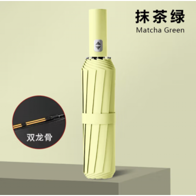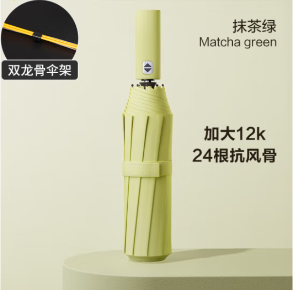 倔强大师全自动十二骨双骨三折黑胶晴雨两用折叠伞 抹茶绿 自营
