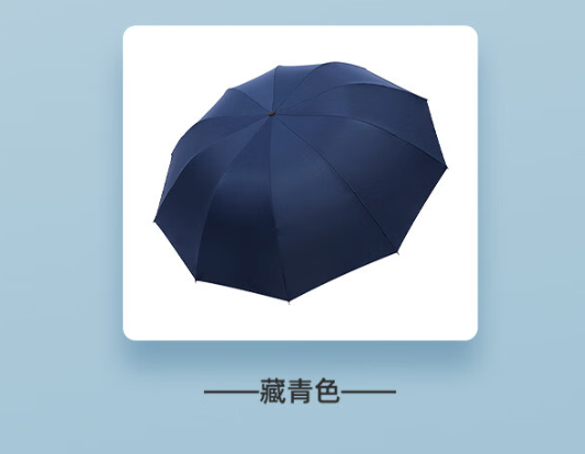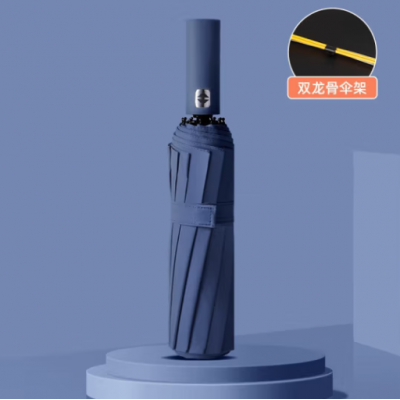 倔强大师全自动十二骨双骨三折黑胶晴雨两用折叠伞 藏青色 自营