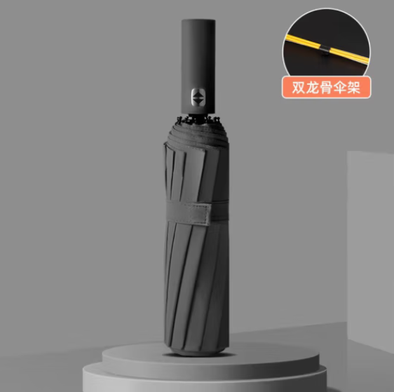 倔强大师全自动十二骨双骨三折黑胶晴雨两用折叠伞 曜石黑 自营