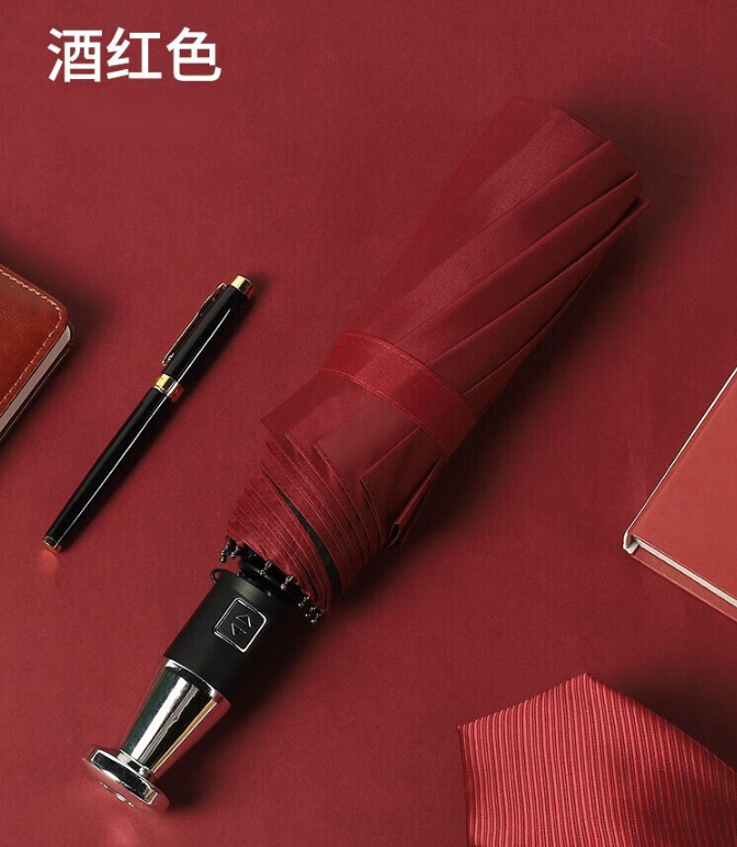倔强大师全自动十骨黑胶晴雨伞 酒红色 自营