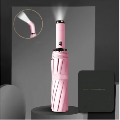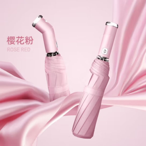 倔强大师全自动双股晴雨伞 旋转led灯筒 樱花粉 自营