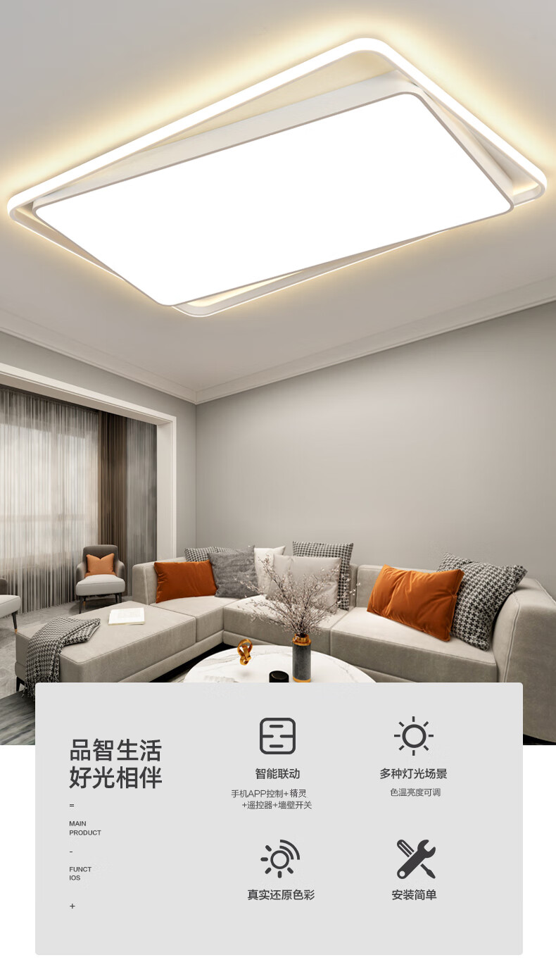 倔强大师优质铁艺+亚克力 小米/小爱语音控制吸顶灯 单光环 长方形 黑色 尺寸:900x600x80 自营