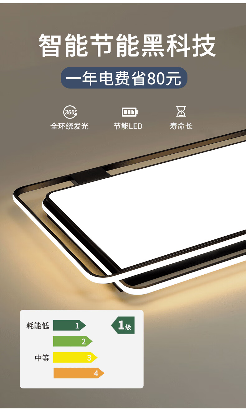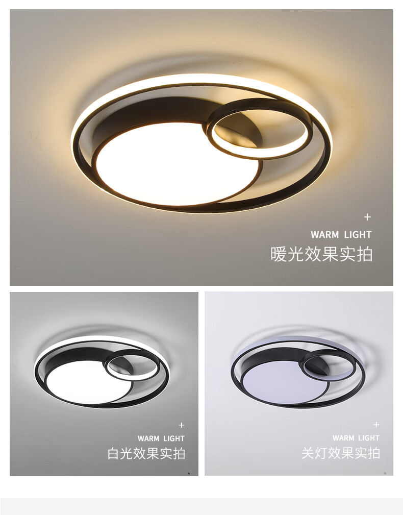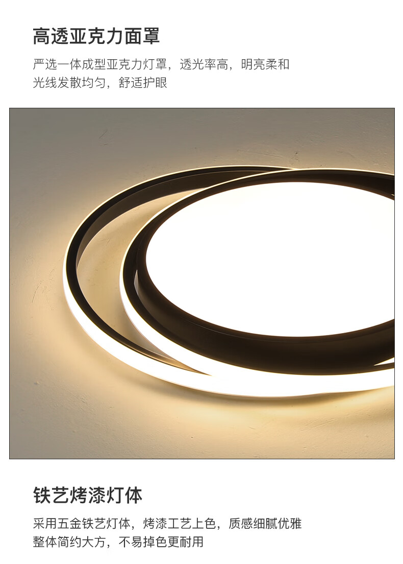 倔强大师优质铁艺+亚克力小米/小爱语音控制吸顶灯 双光环 圆形 黑色 尺寸:∅500x60 自营