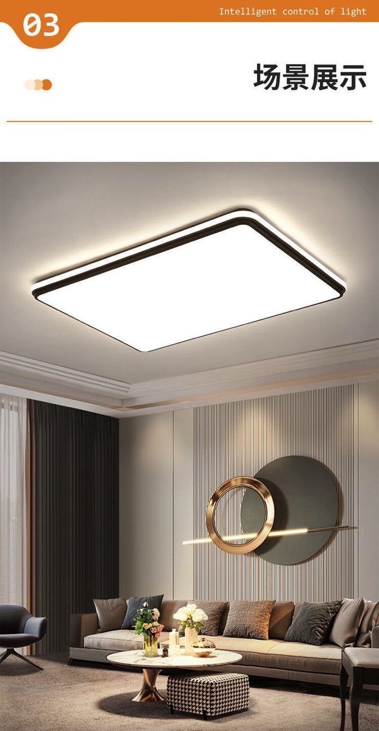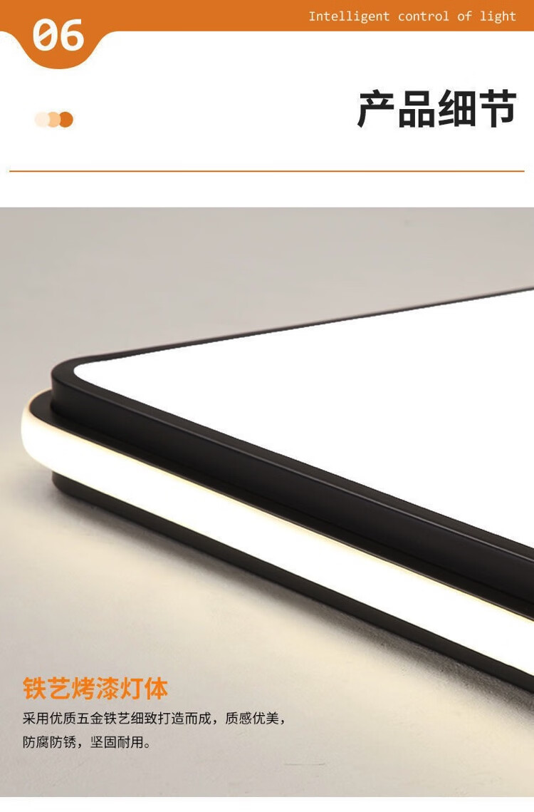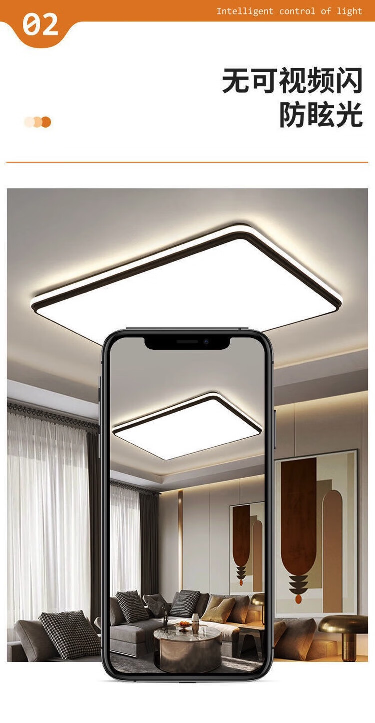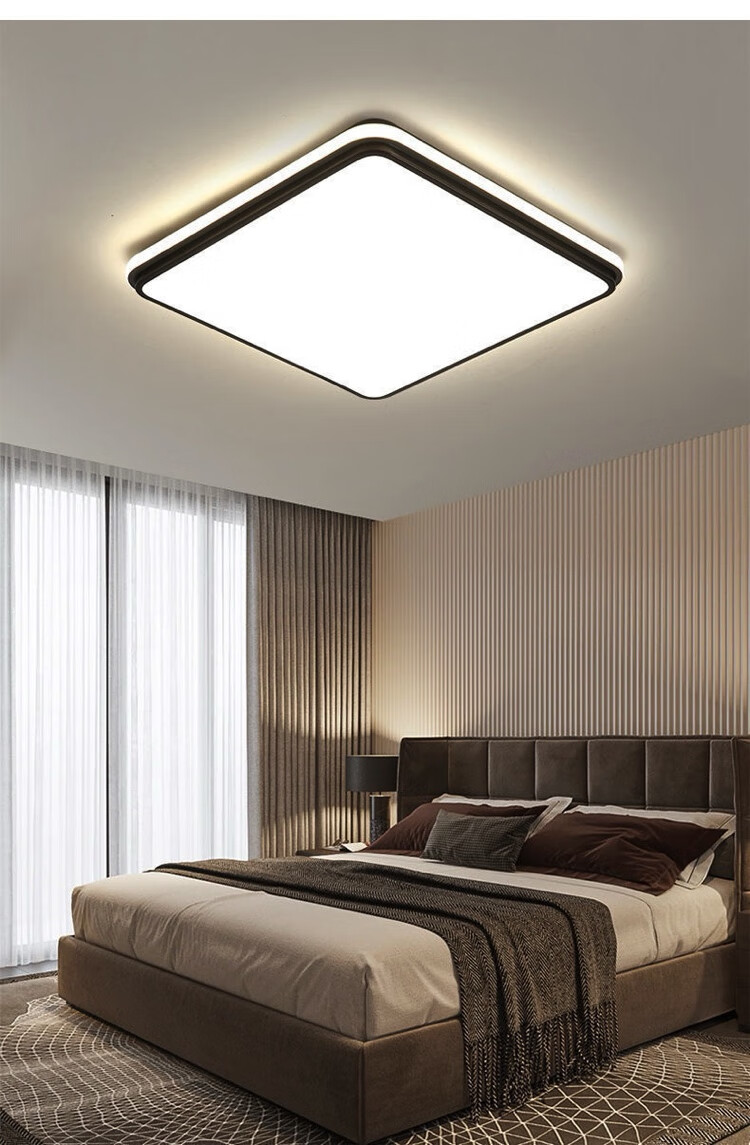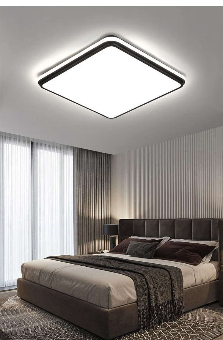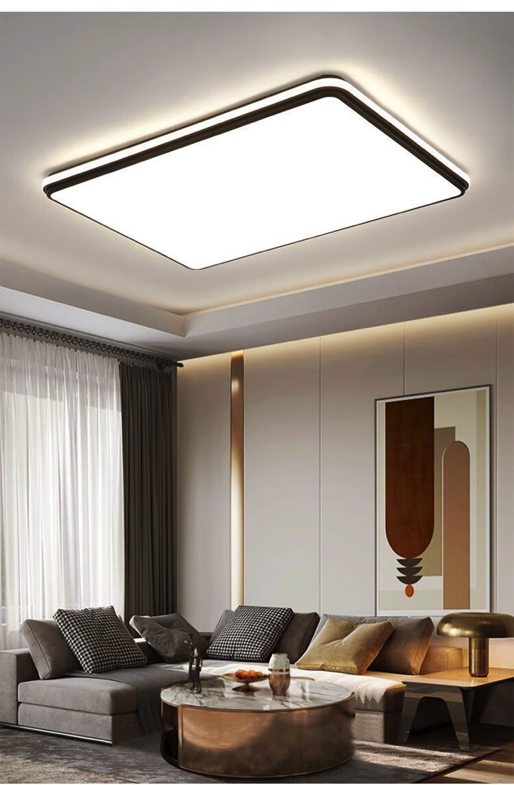 倔强大师优质铁艺+亚克力小米/小爱语音控制吸顶灯 810长方形 黑色 尺寸:900*600*60 自营