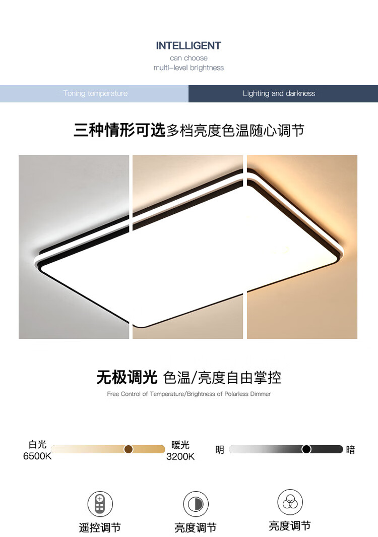 倔强大师优质铁艺+亚克力天猫精灵语音控制吸顶灯 光环810正方形 黑色 尺寸:400*400*60 自营