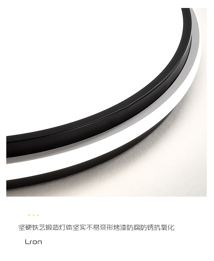 倔强大师优质铁艺+亚克力天猫精灵语音控制吸顶灯 光环810圆形 黑色 尺寸:∅600x60 自营