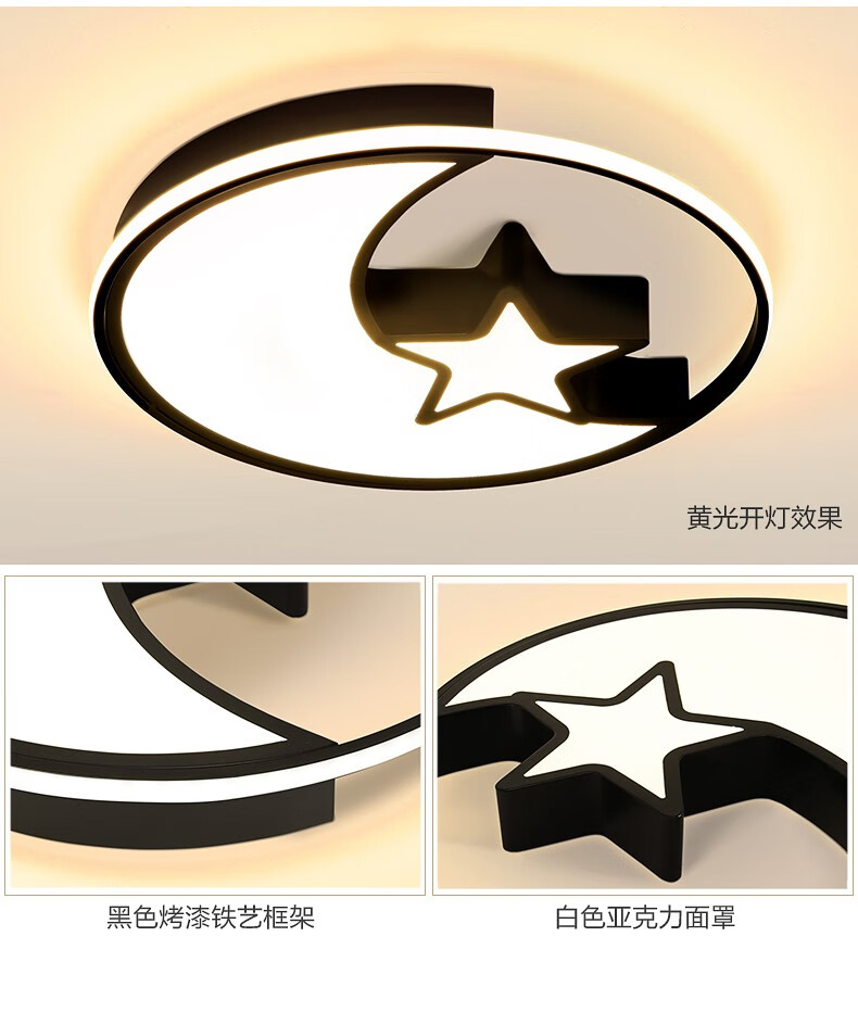倔强大师优质铁艺+亚克力三色变光吸顶灯 96瓦*2 821长方形 黑色 尺寸:900*600*80 自营