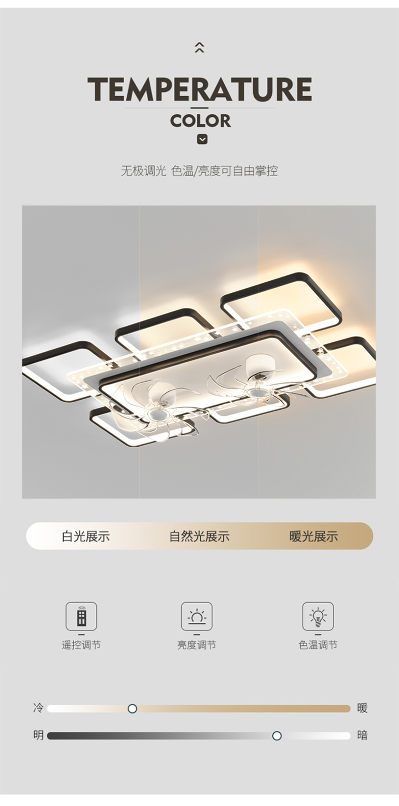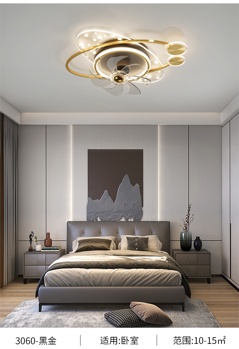 倔强大师直径42寸隐形风扇灯 36瓦*2 三色变光遥控器 颜色:黑色 功能:蓝牙 材质:优质铁艺 自营